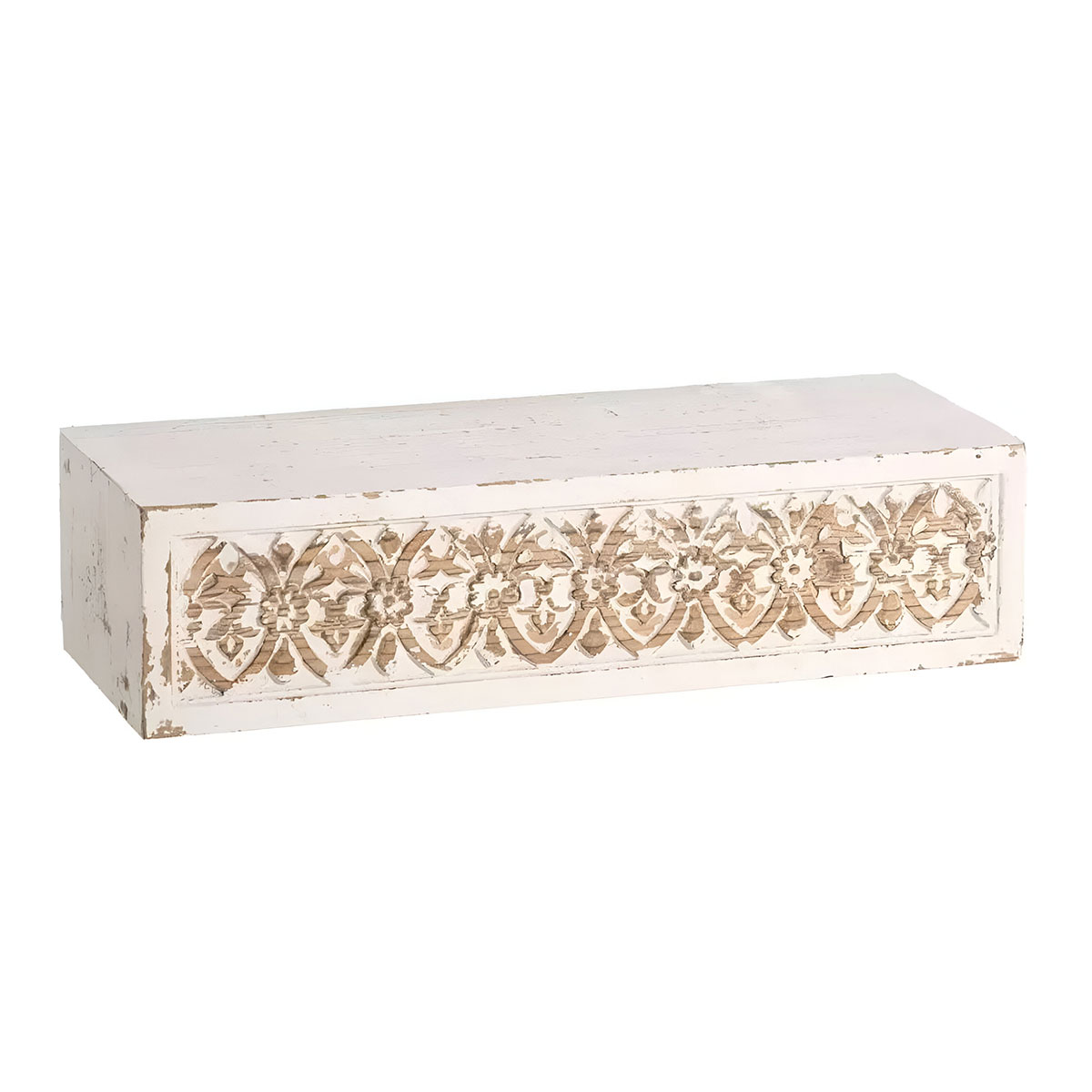 Étagère ethnique blanc patiné Bois sculpté Dim : 60 x 23 x 15 cm Se fixe au mur par système invisible