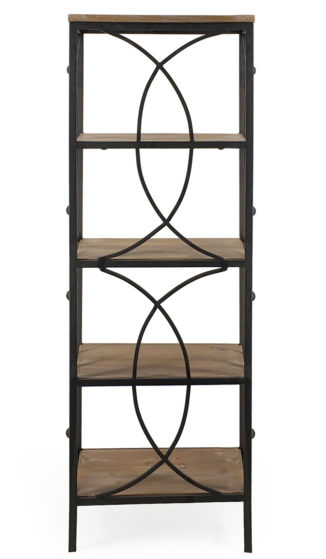 Etagère Bibliothèque avec 4 tablettes fer forgé noir et bois massif naturel Kalioka 42cm