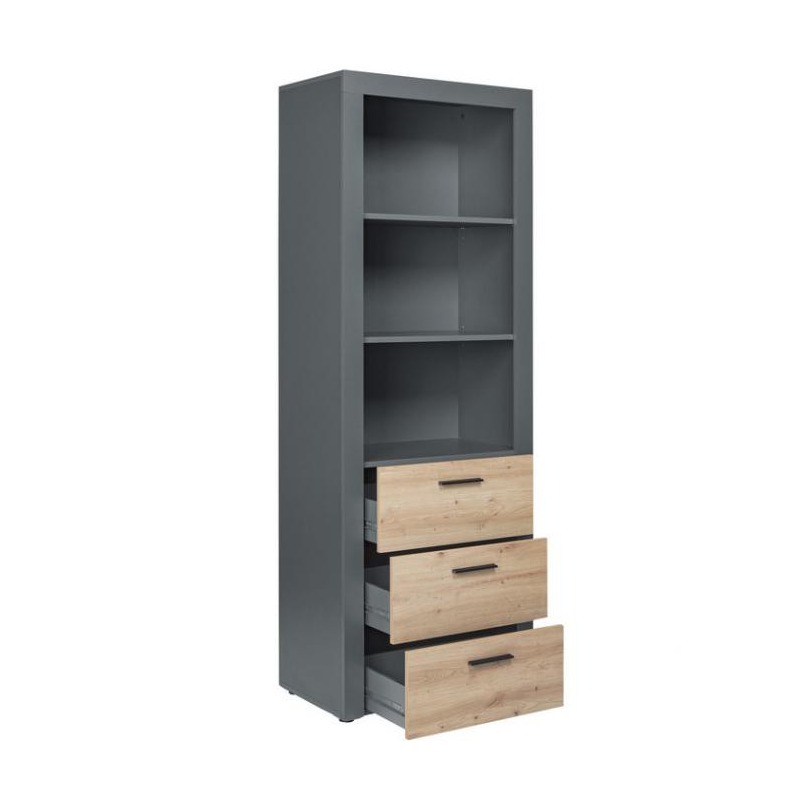 8 niches et 3 tiroirs pour un maximum de rangements ! Tiroirs montés sur rails coulissants pour un réel confort d'utilisation Il est fabriqué en panneaux de particules surface mélaminée, structure solide. Facile d'entretien avec un chiffon humide Matière : panneaux de particules mélaminé Coloris : chêne clair et anthracite Dimensions : L 69 x H 190 x P 42 cm Poids : 52 kg Garantie 2 ans Meuble à monter soi-même et livré avec une notice de montage Nombre de colis 2