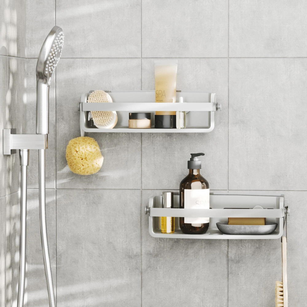 Cette étagère de douche utilise astucieusement l'espace disponible de votre douche pour vous offrir plus de place et vous permettre de garder vos produits essentiels à portée de main. Facile à poser, ce support comporte des bandes adhésives étanches qui n'abîme pas les murs et peuvent être fixées à plusieurs surfaces telles que carreaux, plâtre, béton, etc. Dimensions : 9 x 33 x 12 cm Matière : polypropylène