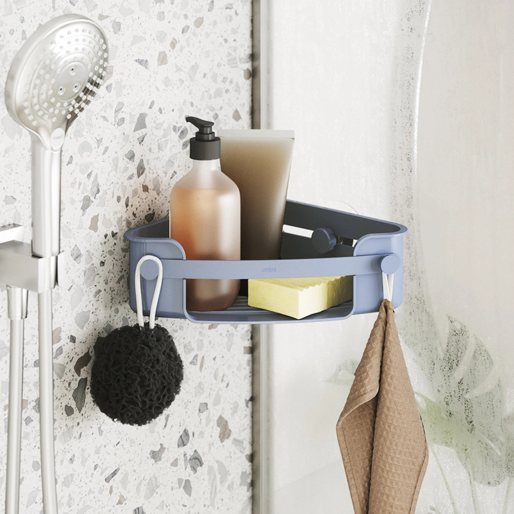 Cette étagère de douche en coin utilise astucieusement l'espace disponible de votre douche pour vous offrir plus de place et vous permettre de garder vos produits essentiels à portée de main. Facile à poser, ce support comporte des bandes adhésives étanches qui n'abîme pas les murs et peuvent être fixées à plusieurs surfaces telles que carreaux, plâtre, béton, etc. Dimensions : 19 x 30 x 9 cm Matière : polypropylène