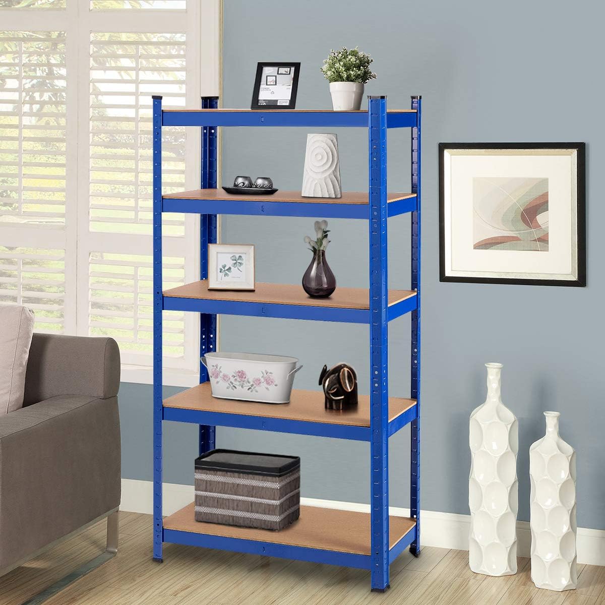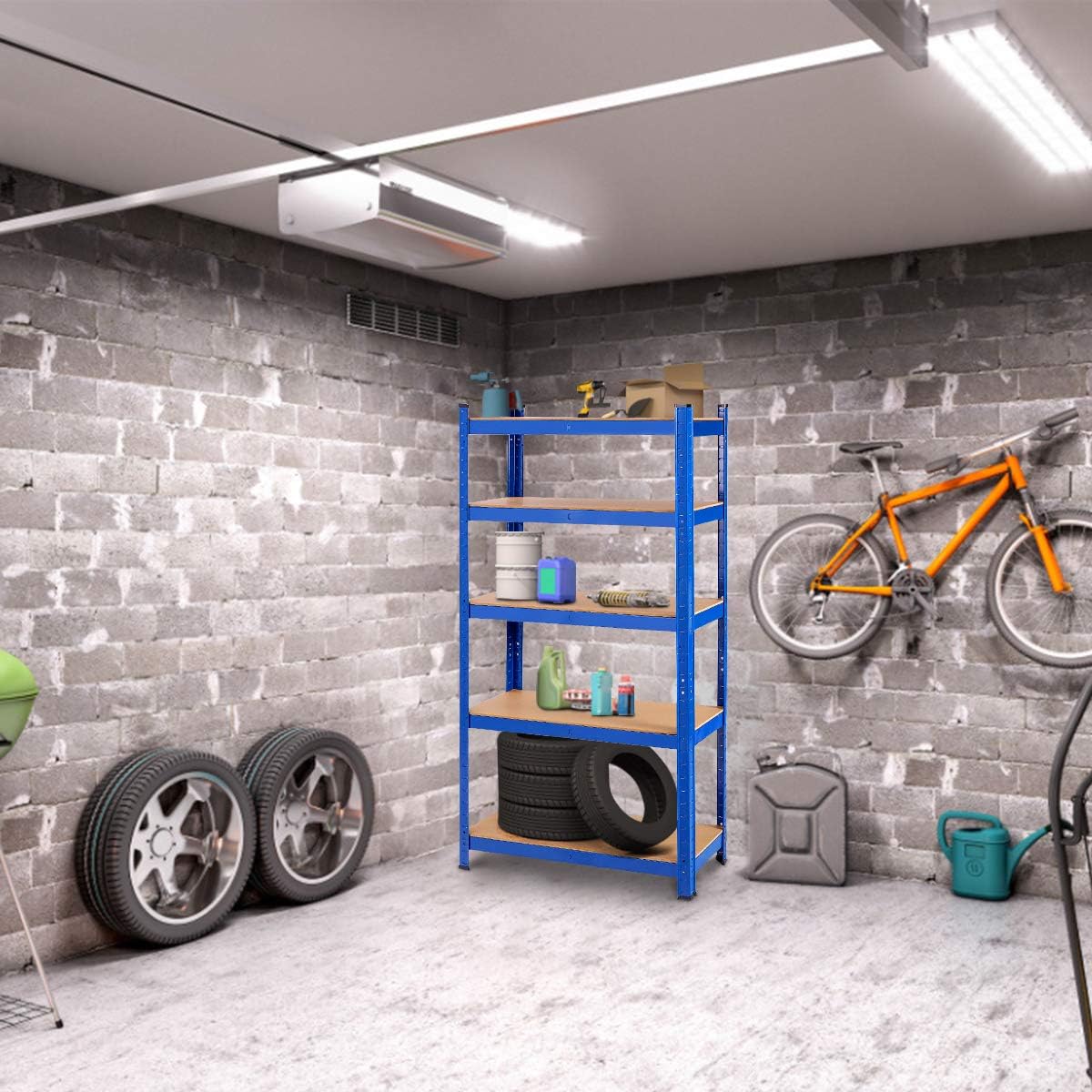 Etagère de rangement 5 étagères, pour garage, atelier, divers modèles, charge lourde en fer et mdf,bleu