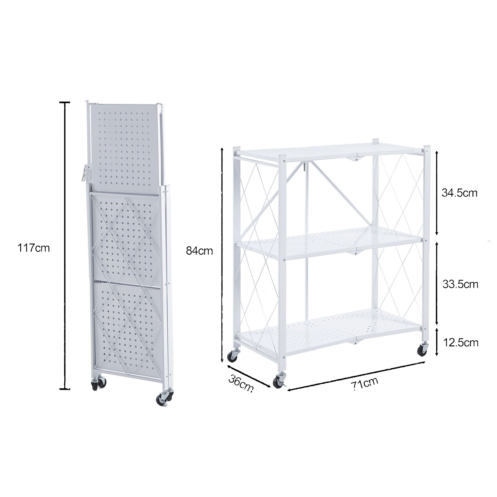 | Libellé | Étagère de Rangement à 3 Niveaux Pliable et Roues CATTERHOUSE Kim 84 - 71,5x36x84 cm Charge Lourde 120 Kg Cadre Acier Blanc |