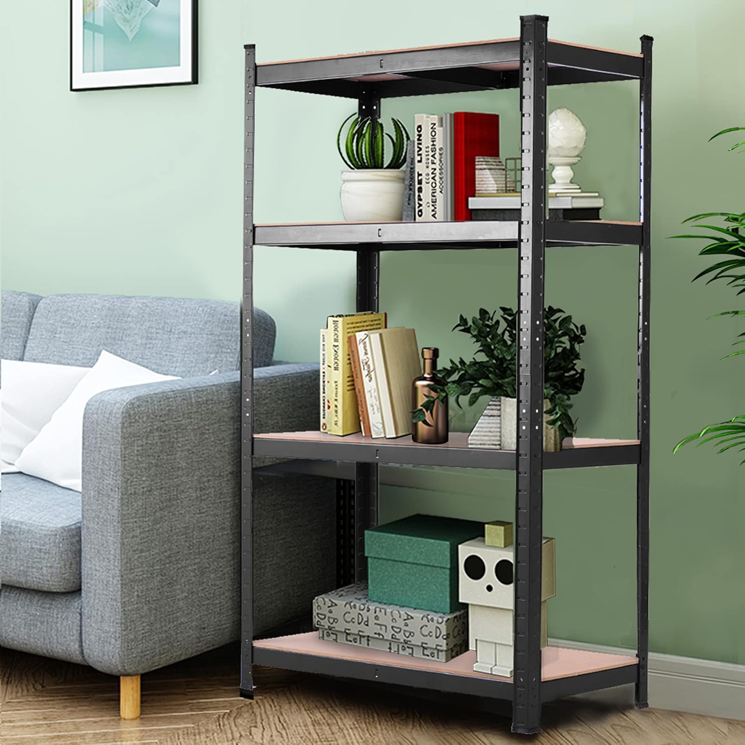 Etagère de rangement avec 4 étagères, garage, atelier, divers modèles, charge lourde en fer et mdf,noir