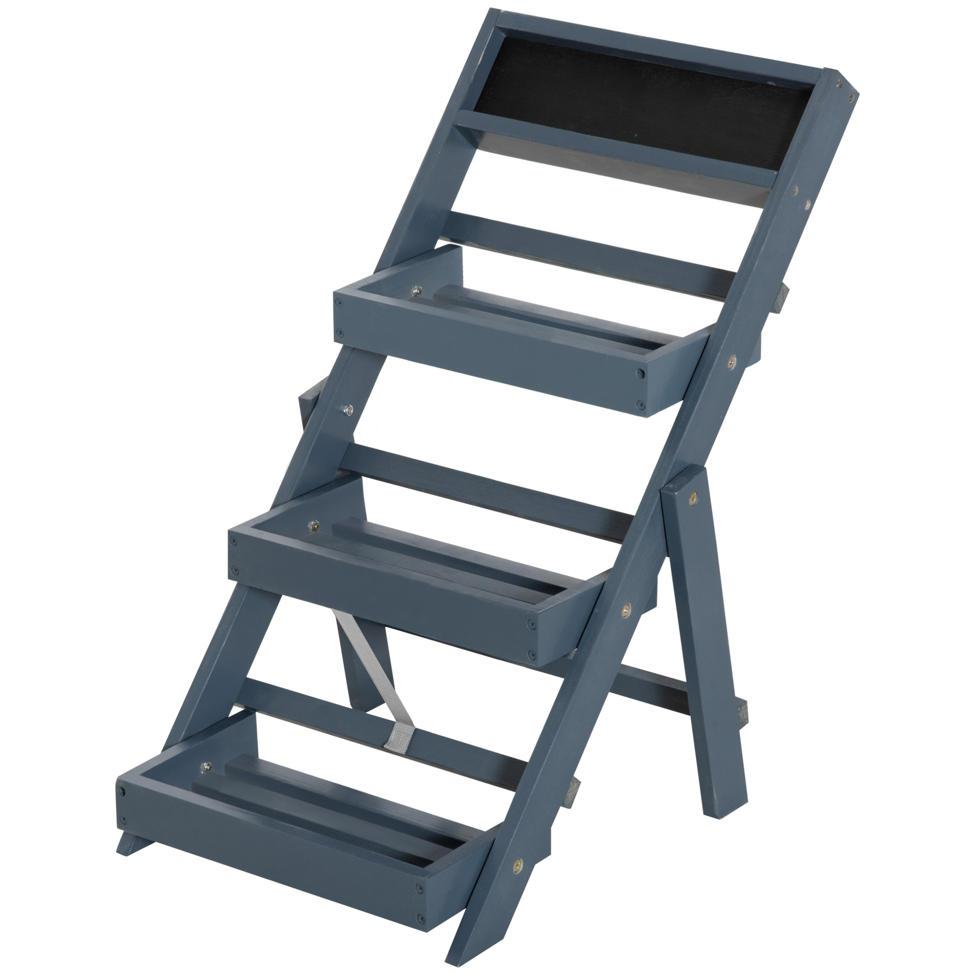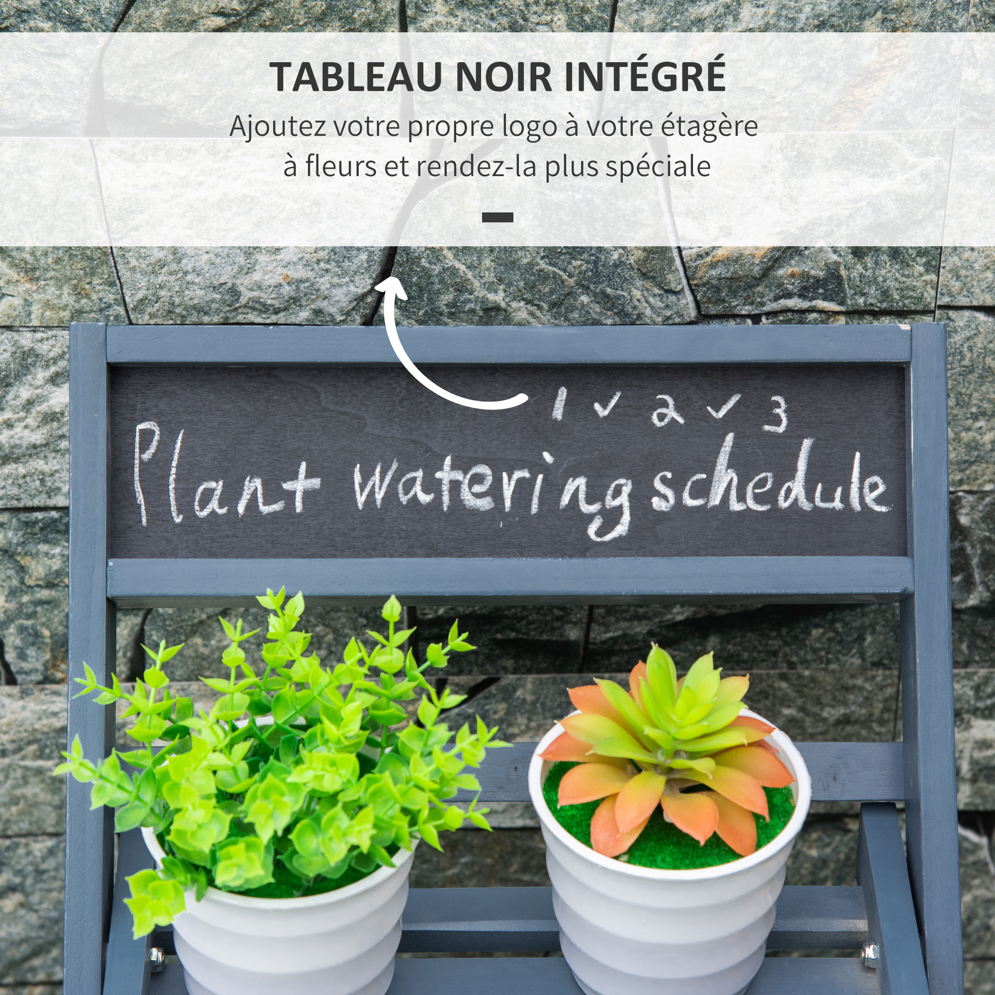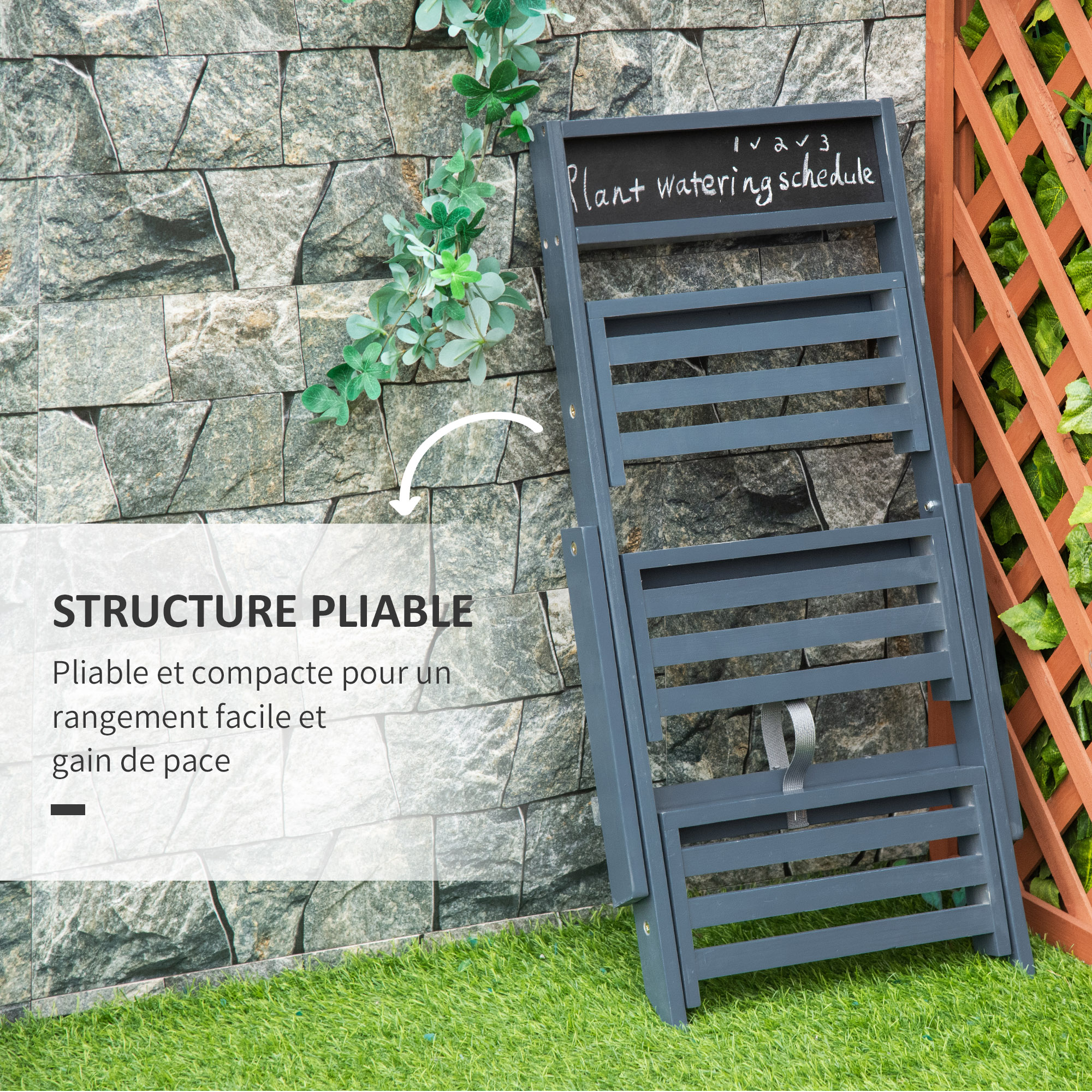| Libellé | Étagère échelle à fleurs pliable - porte plante bois 3 étagères avec rebord - tableau noir personnalisable intégré - bois sapin gris |