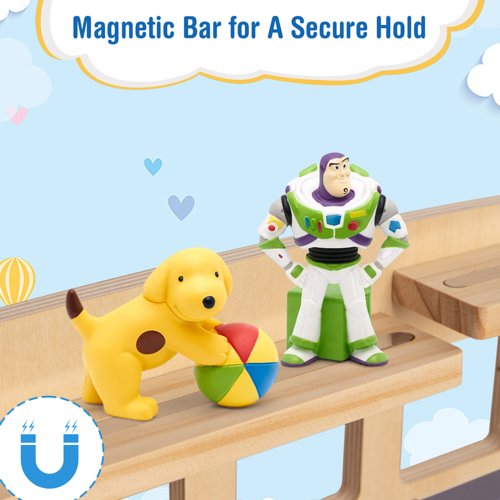 Accès Facile et Interaction: La conception ouverte de l'étagère permet un accès facile à chaque Toniebox, encourageant votre enfant à interagir de manière indépendante avec ses personnages audio préférés.