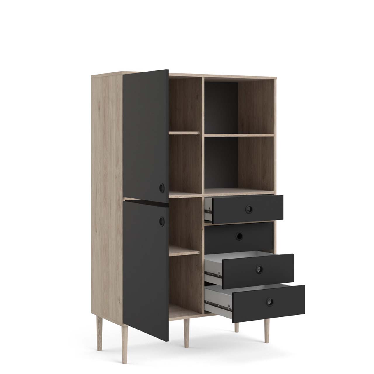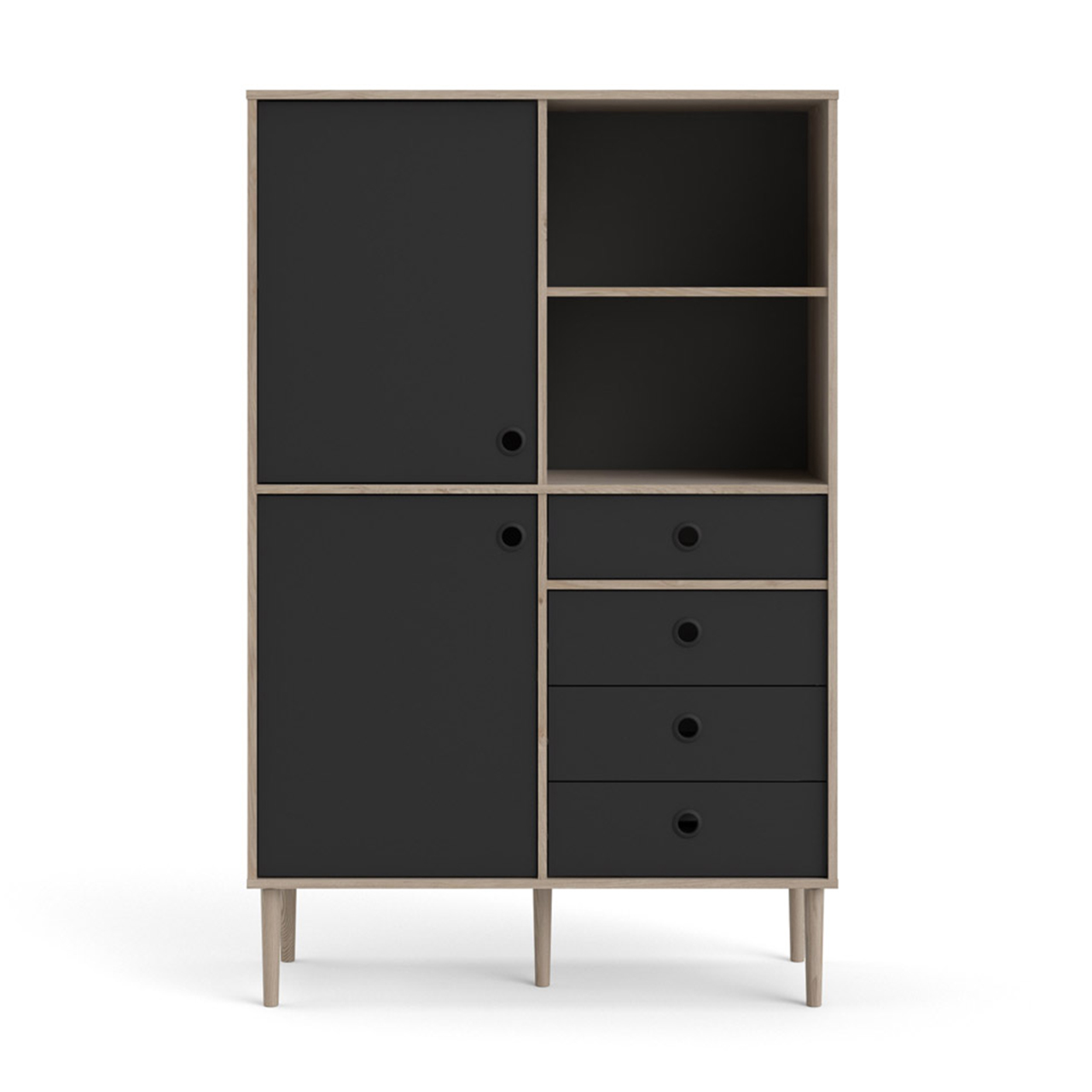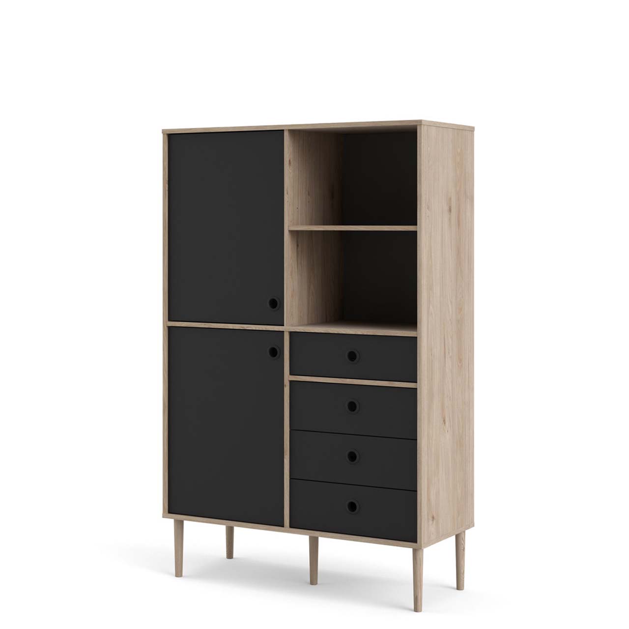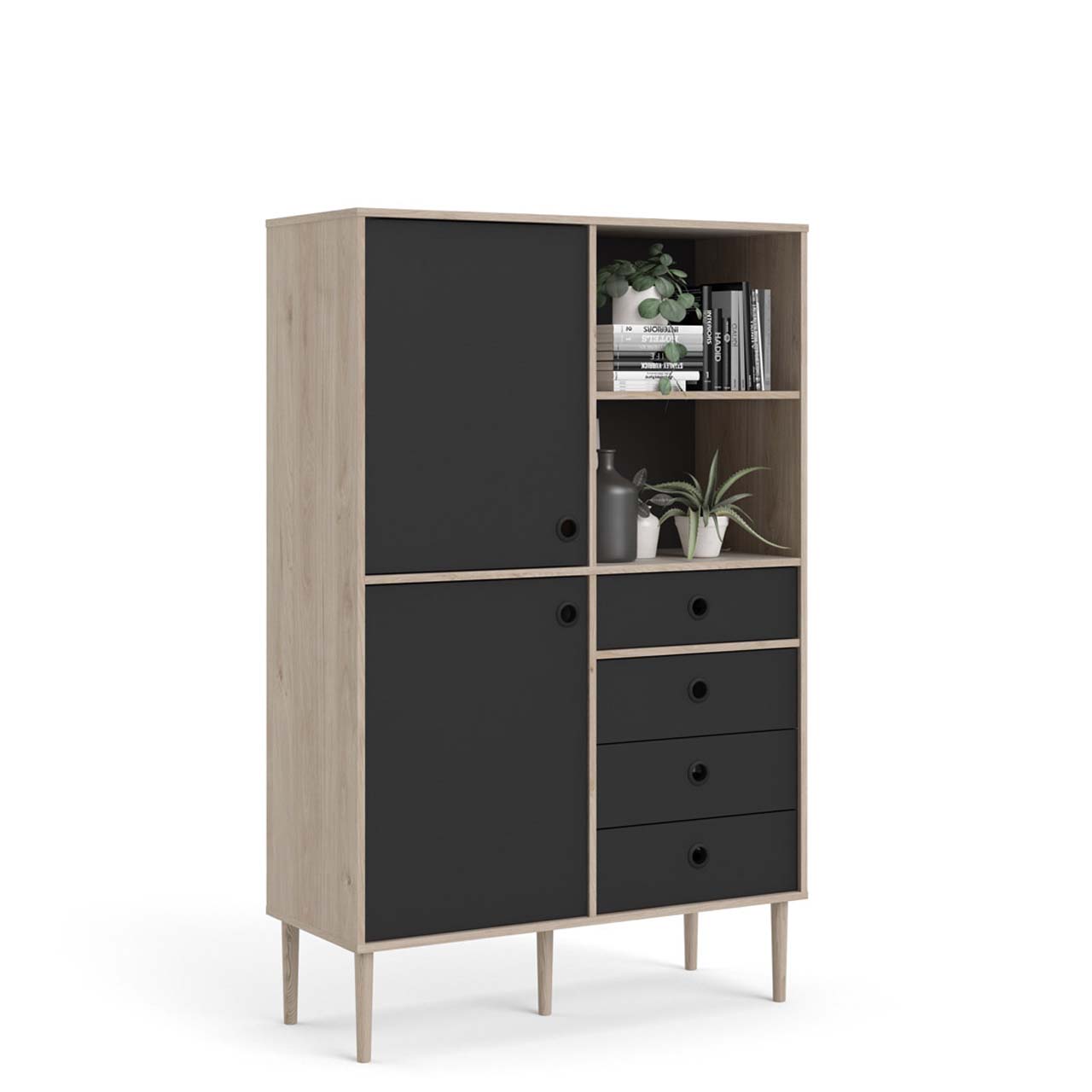 Bibliothèque Penny 2 portes, 4 tiroirs et 2 compartiments, décor Hickory et noir mat est une bibliothèque de coloris Noir, qui apporte à la fois style et fonctionnalité à votre intérieur. Bibliothèque Penny 2 portes, 4 tiroirs et 2 compartiments, décor Hickory et noir mat. Ce produit est créé avec un souci du détail, ce qui garantit à la fois un attrait esthétique et une grande durabilité. Il est conçu dans un souci à la fois de fonctionnalité et de style, ce qui en fait le choix parfait pour n’importe quelle pièce de votre maison. Les matériaux utilisés sont de haute qualité, ce qui confère au produit une longue durée de vie et lui permet de résister à une utilisation quotidienne. Que ce soit pour le rangement ou comme ajout décoratif, ce produit rehaussera votre décor et apportera plus de confort et d'élégance à votre maison.