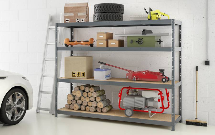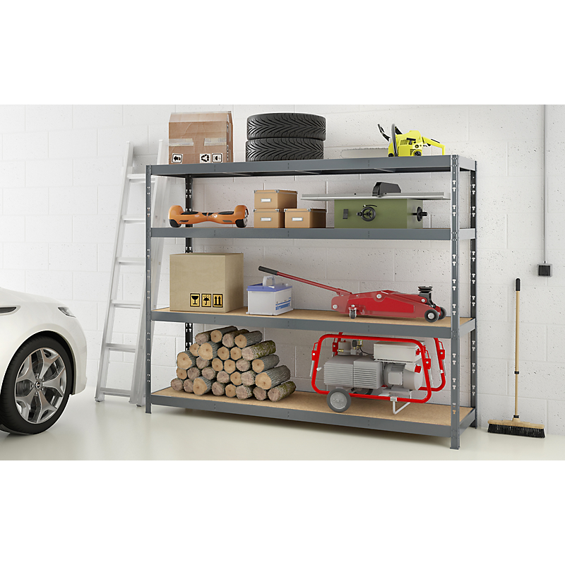 Etagère charge lourde 4 plateaux aggloméré 8 mm dimensions 60x220x185 cm 300 kg/plateau peinture époxy