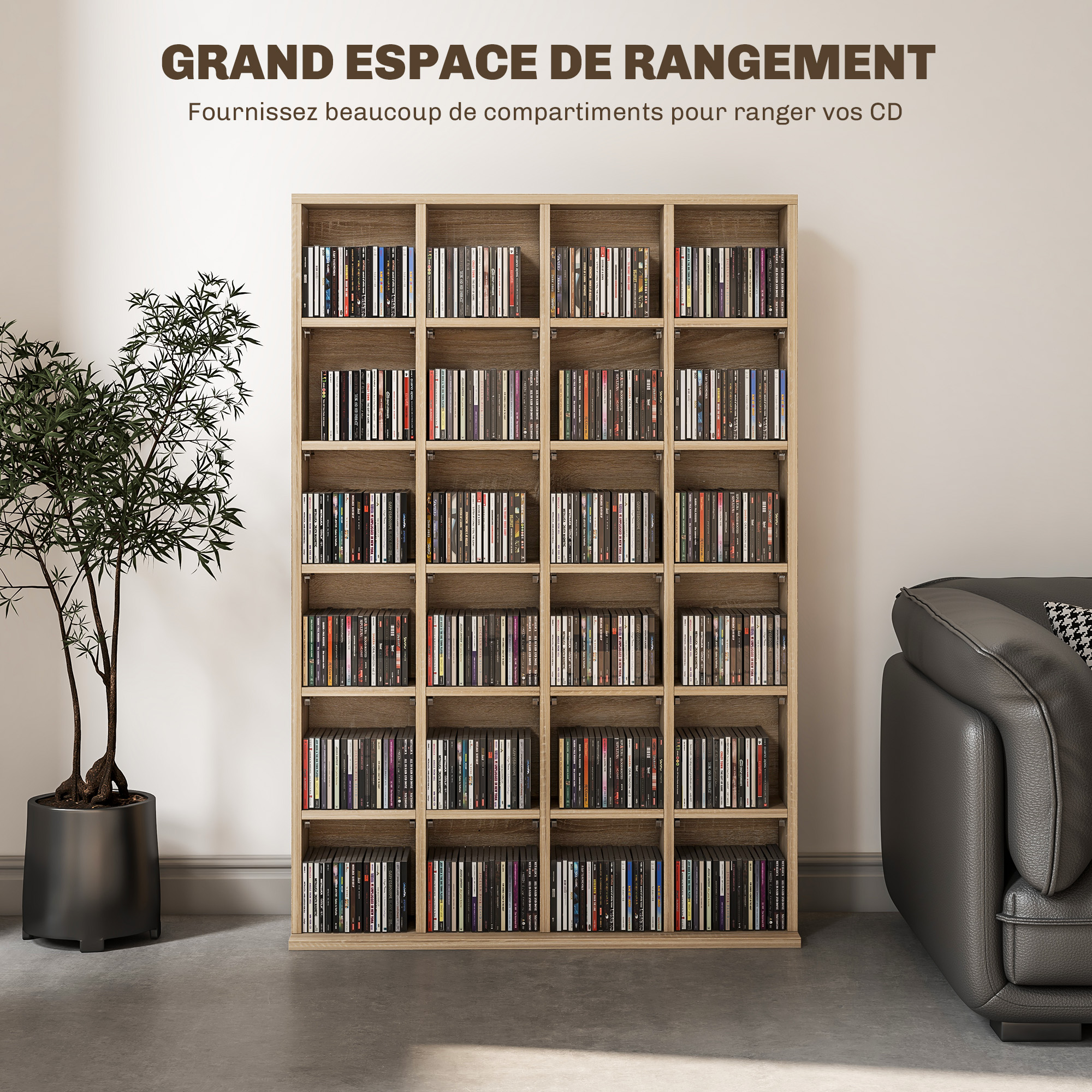 Étagère rangement CD/DVD meuble de rangement pour 480 CDs 24 compartiments réglables en hauteur 89 x 20 x