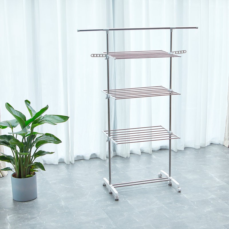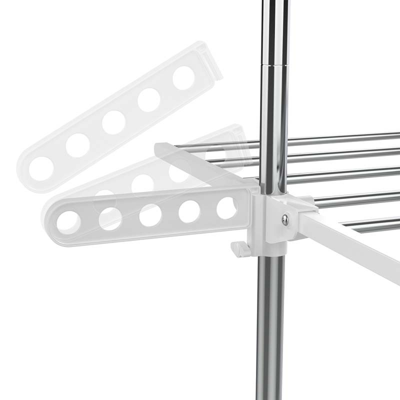 Le EX100 de la marque GARNIER a également été conçu de sorte à ce qu'il soit multifonctions. Tout d'abord il possède 2 porte-cintres, la barre supérieure de l'étendoir est extensible, idéal pour étendre des draps et d'autres linges volumineux. Enfin les 6 plateaux d'étendages sont réglables en hauteur afin de répondre à tous vos besoins.