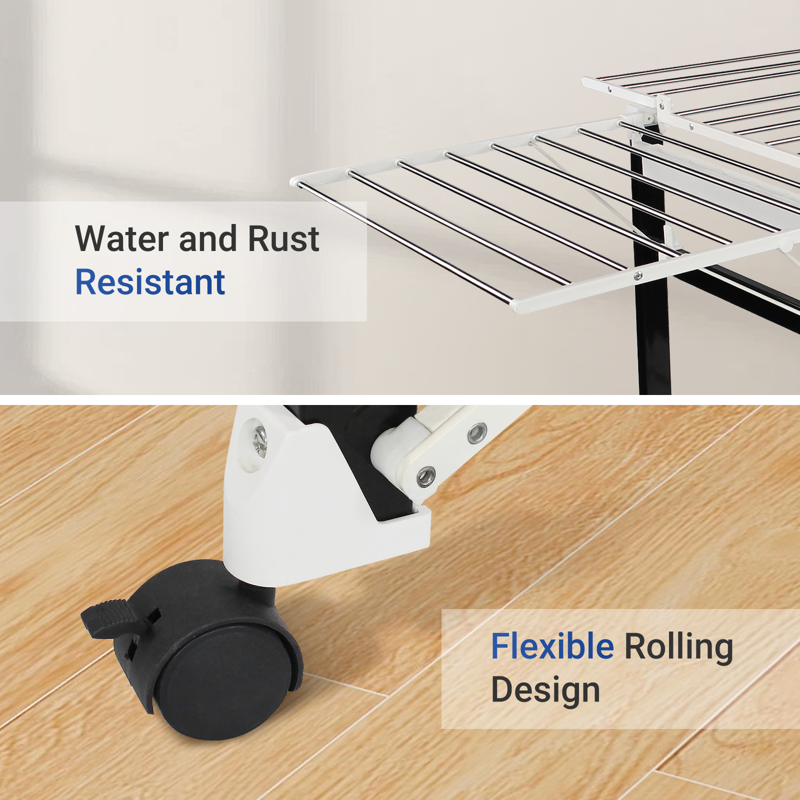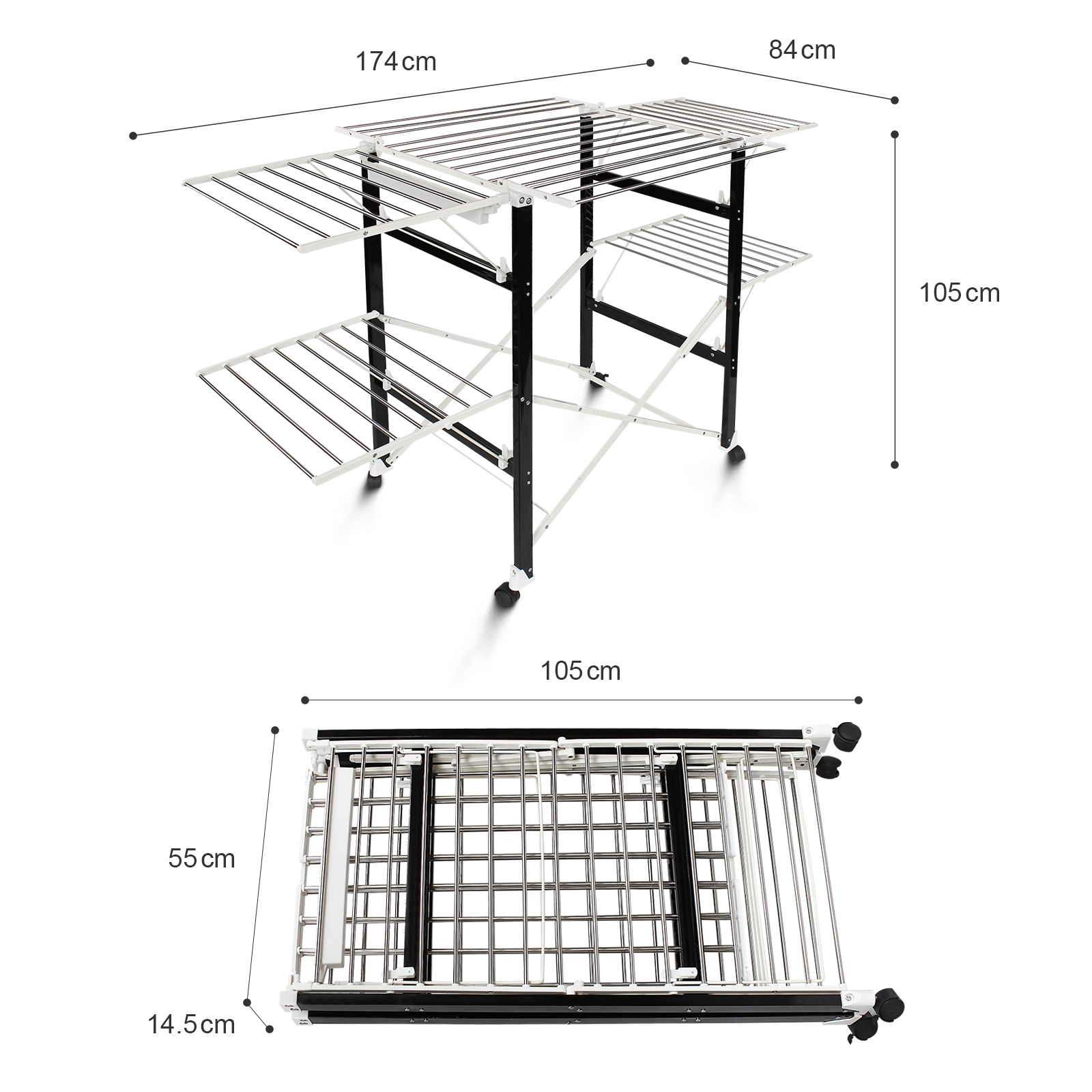 Libellé Etendoir à Linge Pliant, Etendage à Linge Pliable, 174 x 105 x 84 cm, Noir/Blanc, Matériau: Plastique ABS, Acier inoxydable