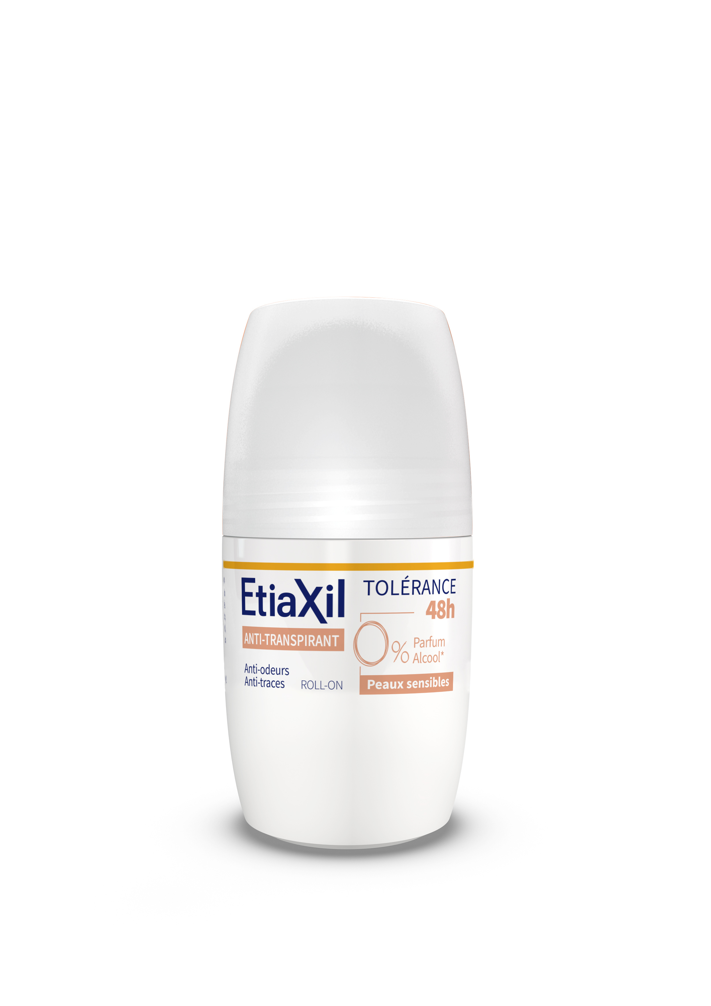 Le roll-on Etiaxil Anti-transpirant Tolérance 48h, a été spécifiquement développé pour prendre soin des peaux sensibles sans faire de compromis sur l'efficacité. Sans alcool* et sans parfum, sa formule permet d’assurer la préservation de la barrière cutanée. Elle contient des actifs déodorants et anti-transpirants soigneusement sélectionnés pour assurer une efficacité longue durée notamment grâce à l'action de la Terre de diatomée qui neutralise efficacement les odeurs et absorbe l'humidité tout en respectant les peaux les plus sensibles. Anti-traces jaunes & blanches, il protège sans faire de marque sur les vêtements.