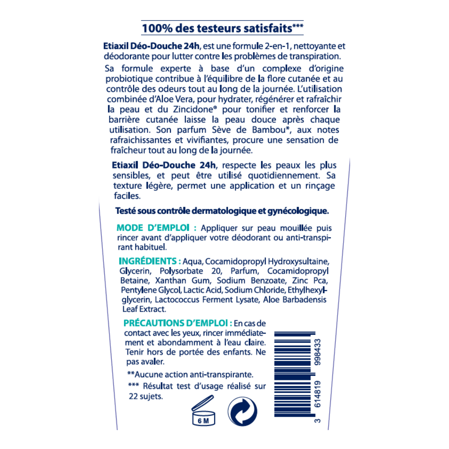 | Libellé | Etiaxil Déo-Douche 24h 200ml |