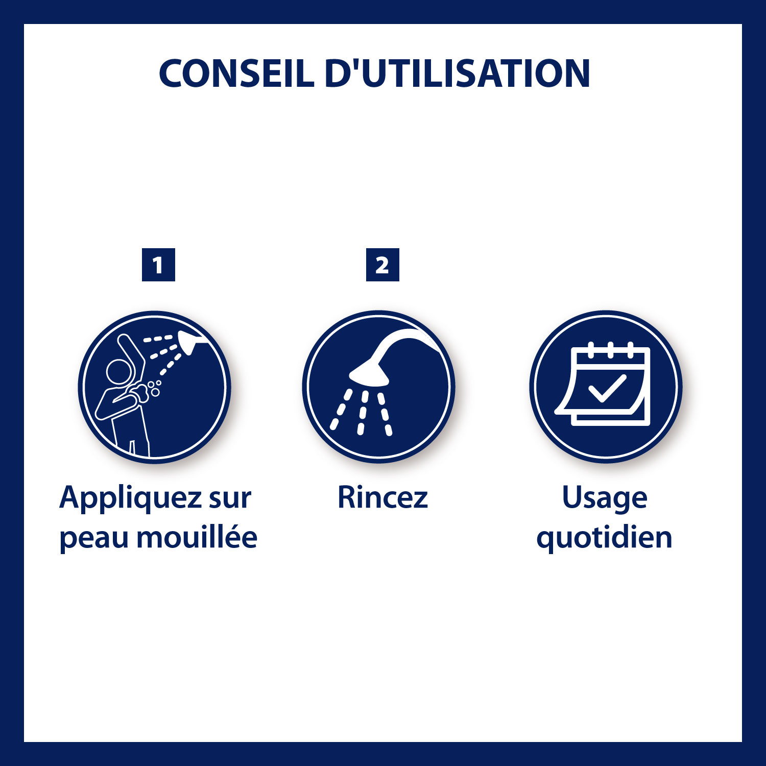 Appliquer sur peau mouillée puis rincer avant d'appliquer votre déodorant ou anti-transpirant habituel.