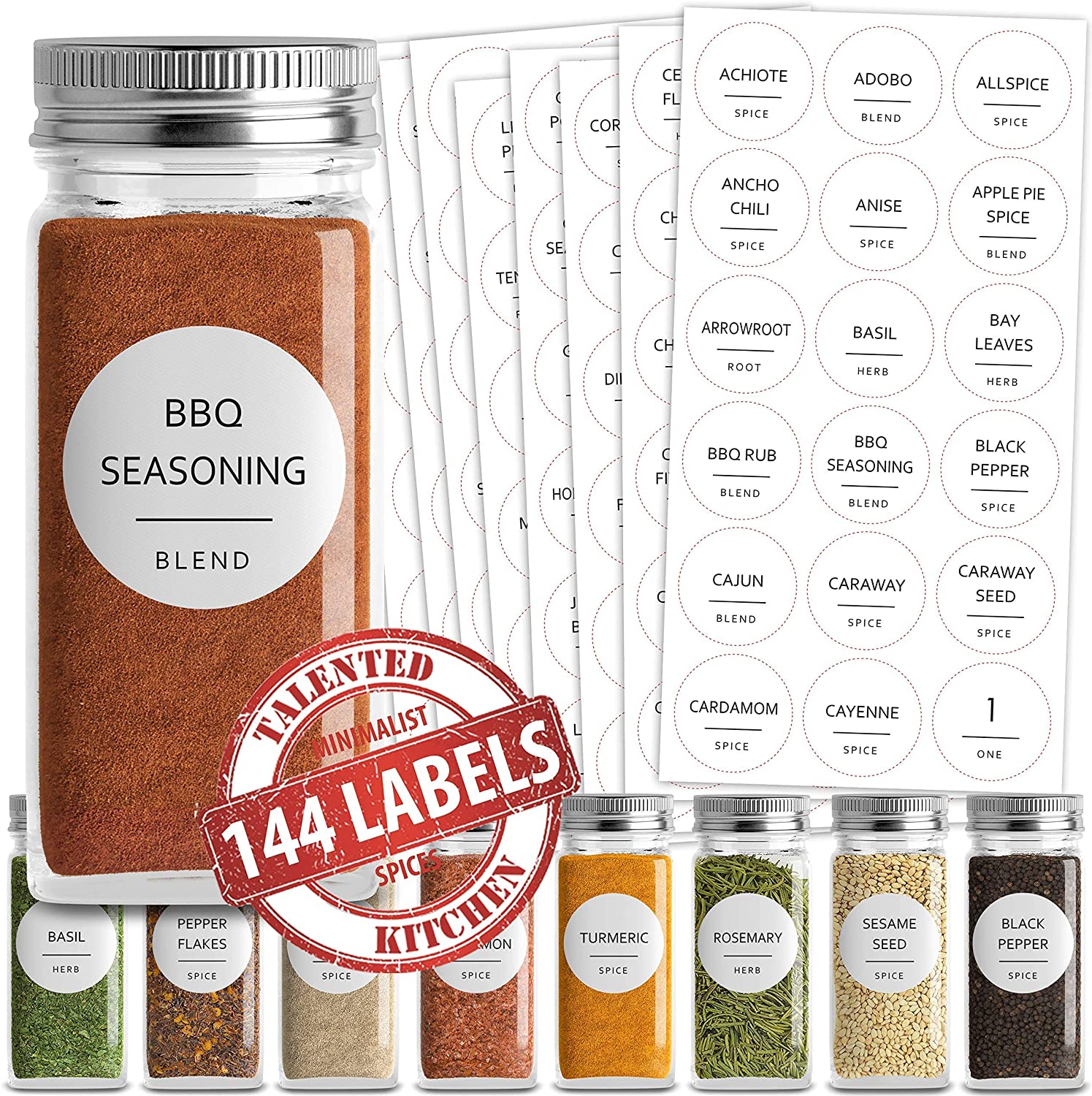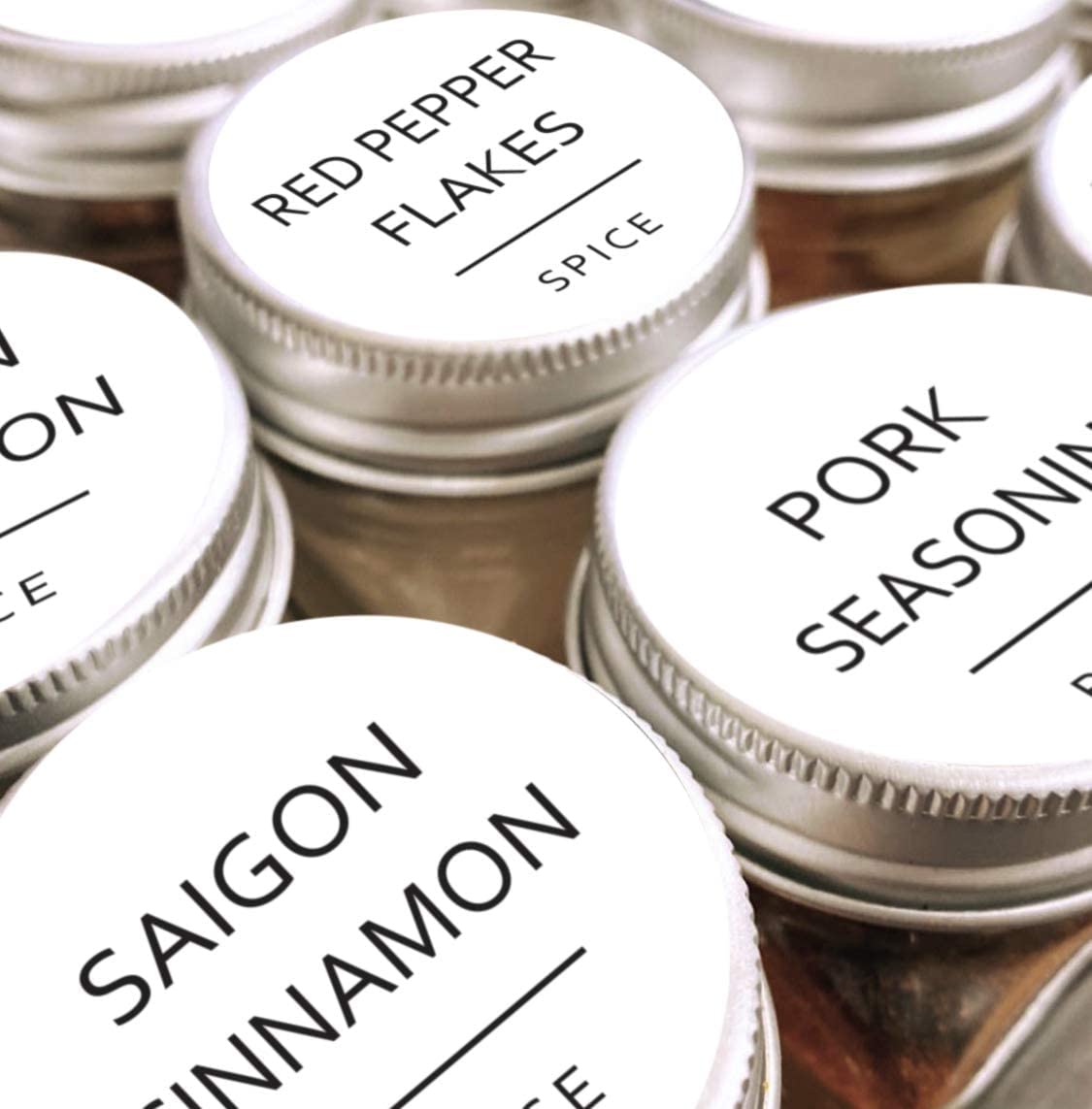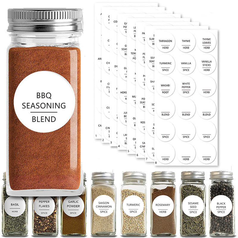 Grand paquet d'étiquettes d'épices : Le kit contient quatre feuilles d'autocollants, un total de 144 autocollants ronds avec les noms d'épices les plus courants.