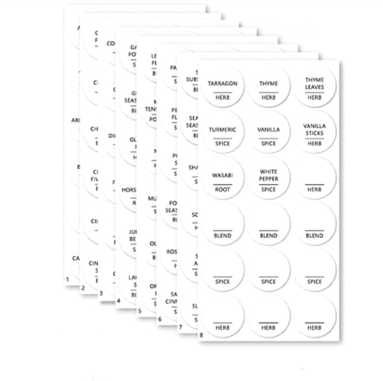 Libellé Etiquettes rondes / autocollants pour épices 144 pièces