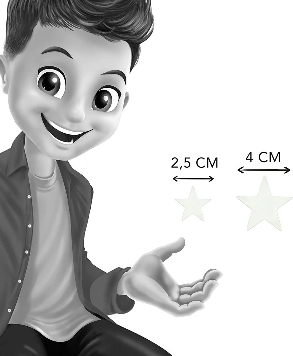 Etoiles phosphorescentes en plastique à coller sur le mur ou le plafond d’une chambre. 1 minute d’exposition à la lumière équivaut à 1 heure de diffusion!