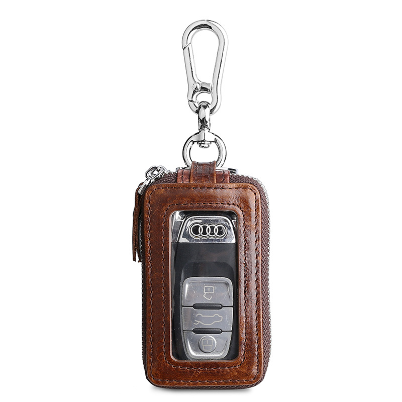 Étui à clés en cuir véritable, bloqueur RFID, porte-clés de voiture avec porte-clés multifonctionnel Brow