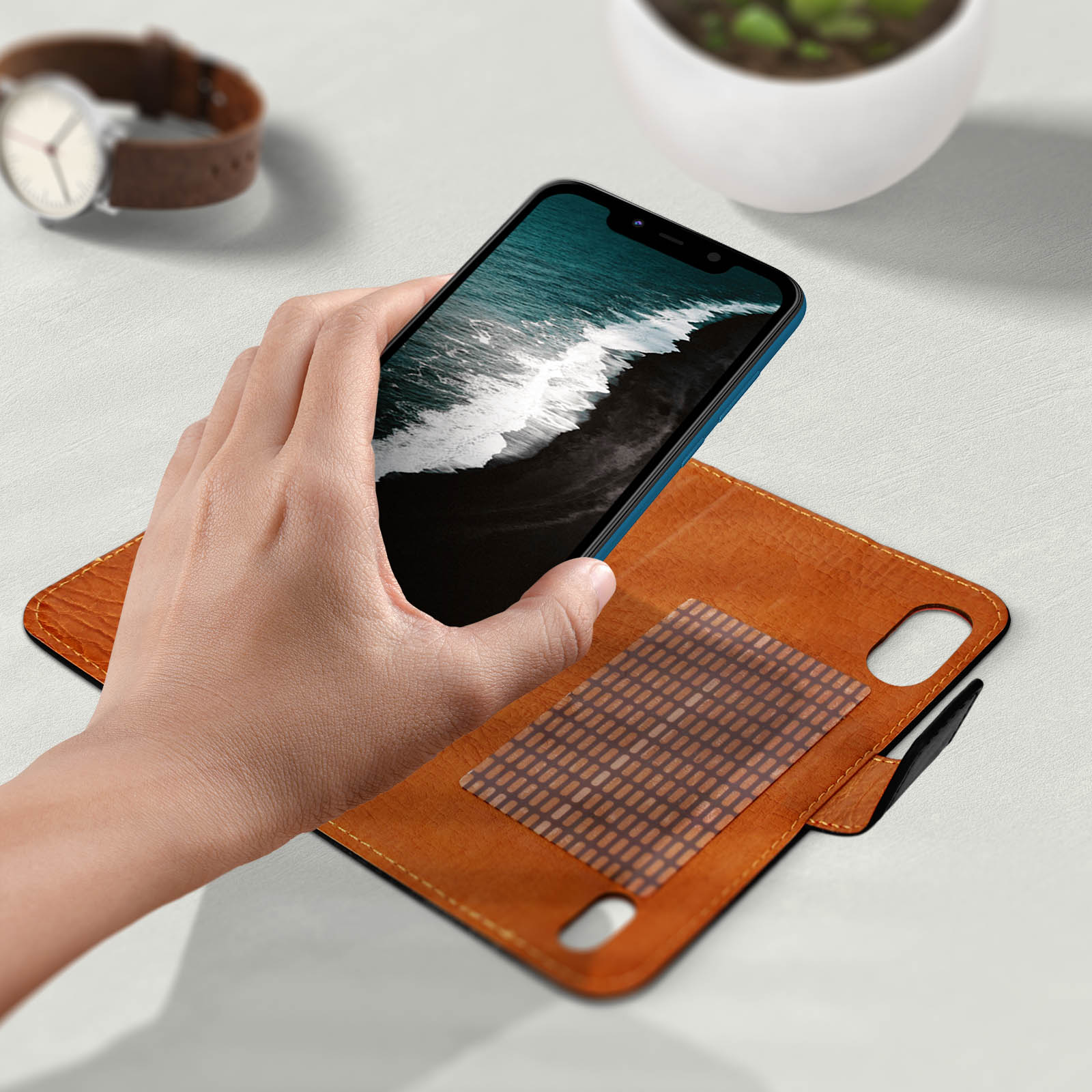 Housse folio pour Altice S42. Protection intégrale à fermeture magnétique. Design élégant. Rangement cartes / billets intégrés. Fixation adhésive. Découpes sur-mesure, fonctionnalités accessibles. Facile à installer.