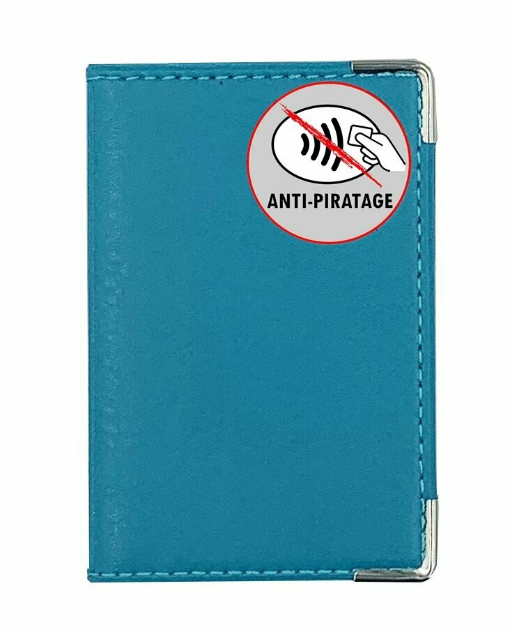 Libellé Etui anti-piratage 2 cartes bancaire bleu pétrole fabriqué en France Porte CB anti RFID