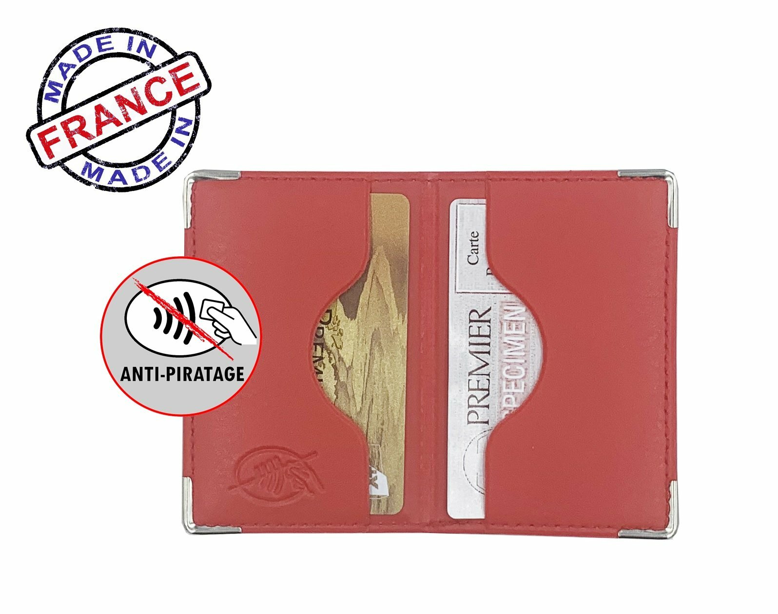 Etui anti-piratage 2 cartes bancaire rouge fabriqué en France Porte CB anti RFID