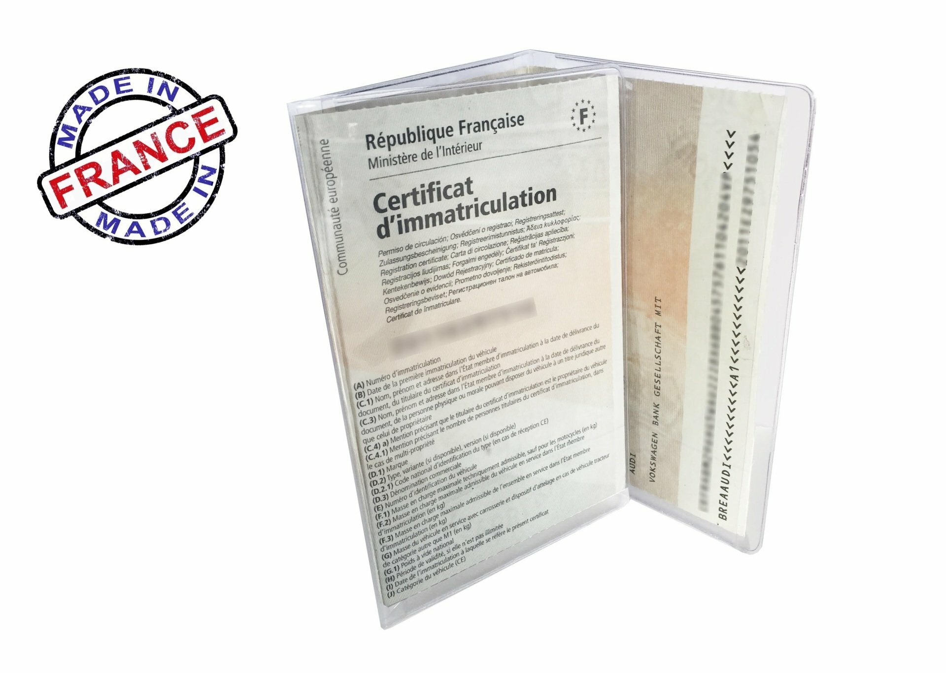 Etui carte grise (cristal transparent) fabriqué en France Pochette voiture auto moto