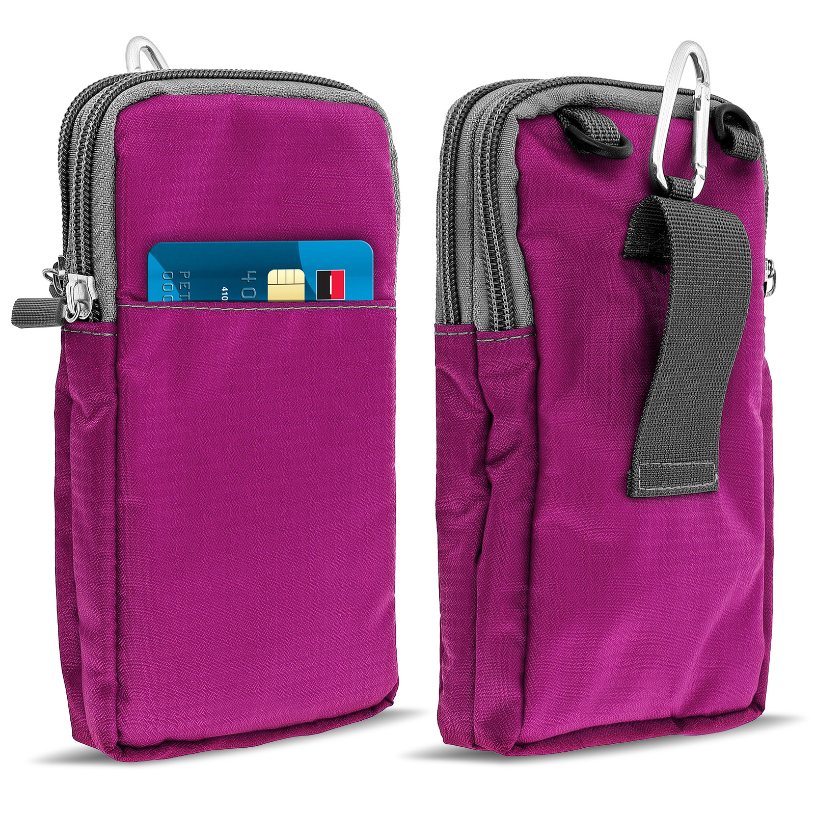 Etui Ceinture Smartphone Passant Ceinture Mousqueton Lanière 2 Poches rose