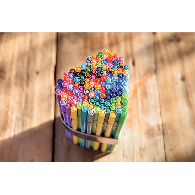 Fabriqué par STABILO en Europe et issu du savoir-faire Beaux-Arts de la marque, le feutre de dessin STABILO Pen 68 est une référence du coloriage depuis 1966. Il est doté d'une pointe ogive moyenne d'1 mm et son encre inodore à base d'eau se décline en 65 couleurs lumineuses et intenses. Polyvalent, le feutre STABILO Pen 68 est parfait pour dessiner, colorier, remplir de grands aplats de couleurs, créer des effets d'aquarelle ou réaliser des mandalas. Il sera l'allié de toutes vos créations, à l'école ou à la maison, pour un usage amateur ou professionnel. Grâce à un procédé anti-dessèchement, STABILO Pen 68 peut rester ouvert jusqu'à 24 heures sans sécher sans avoir à remettre le capuchon : parfait pour créer sans aucune limite !
