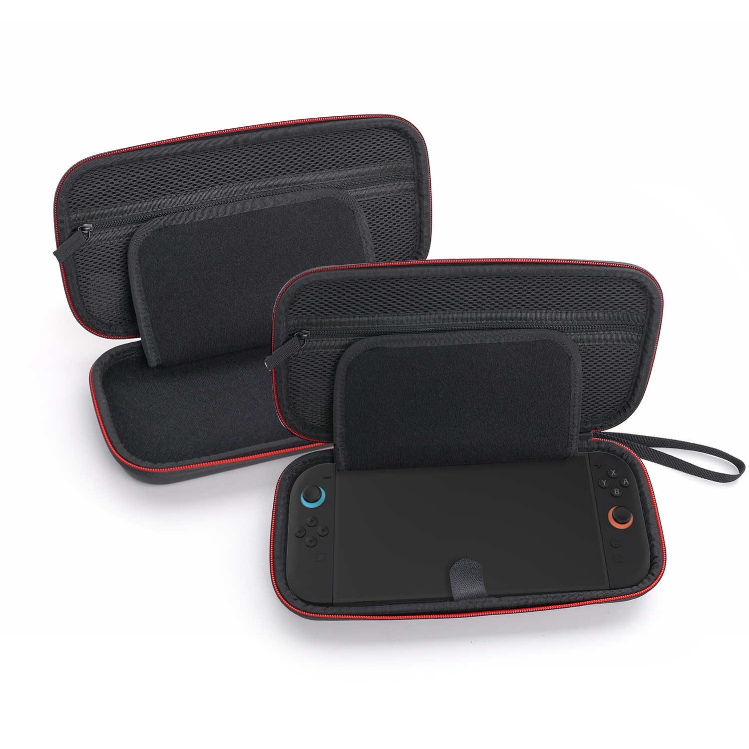 Rangement organisé : Gardez votre SWITCH 2 et ses accessoires bien rangés grâce à l'intérieur intelligemment conçu. Des compartiments dédiés maintiennent votre console, vos cartouches de jeu et autres éléments essentiels en toute sécurité. Le porte-cartes de jeu rouge transparent à 8 emplacements inclus garantit que vos jeux préférés sont toujours à portée de main. Dites adieu aux câbles emmêlés et aux accessoires égarés – tout a sa place dans cet étui bien organisé.