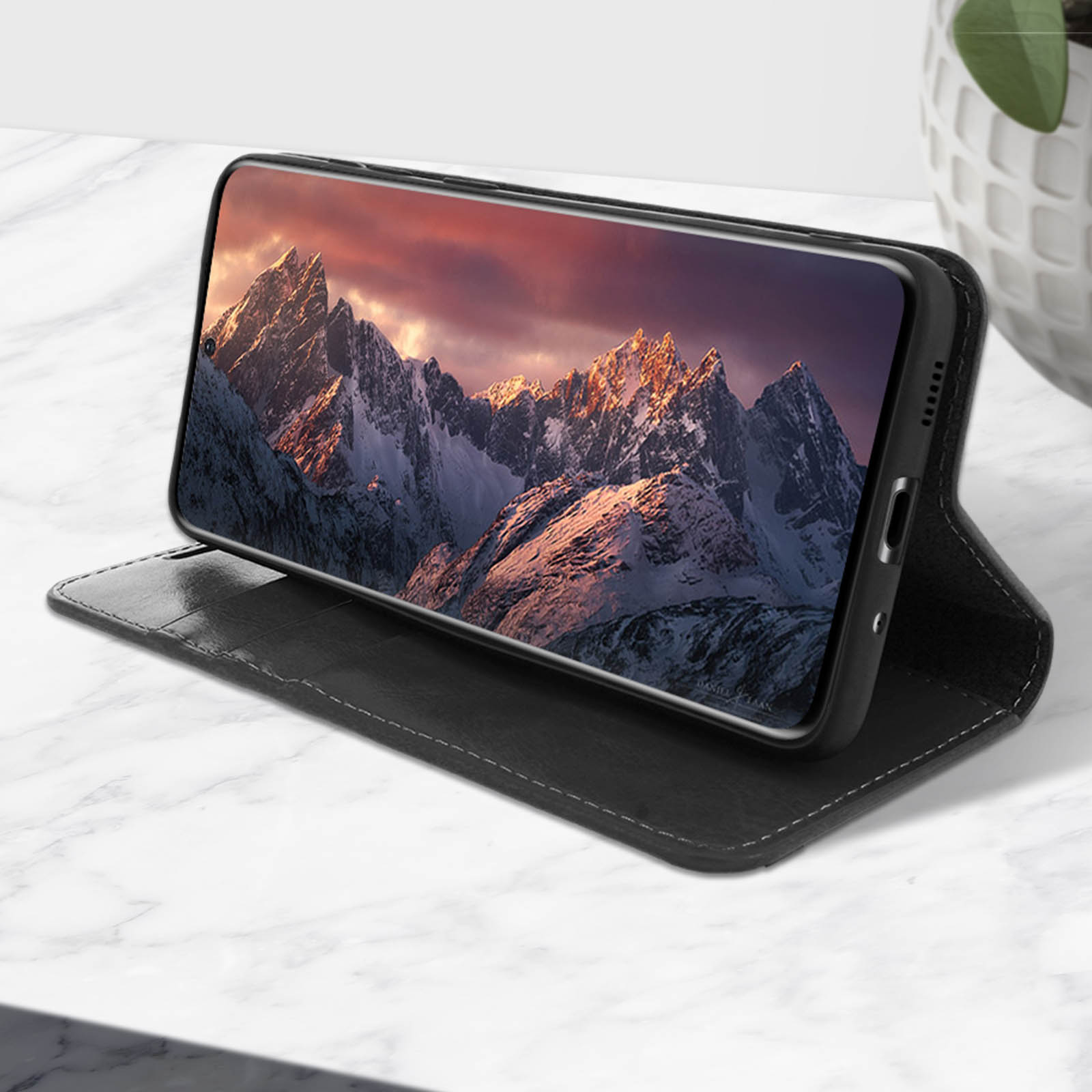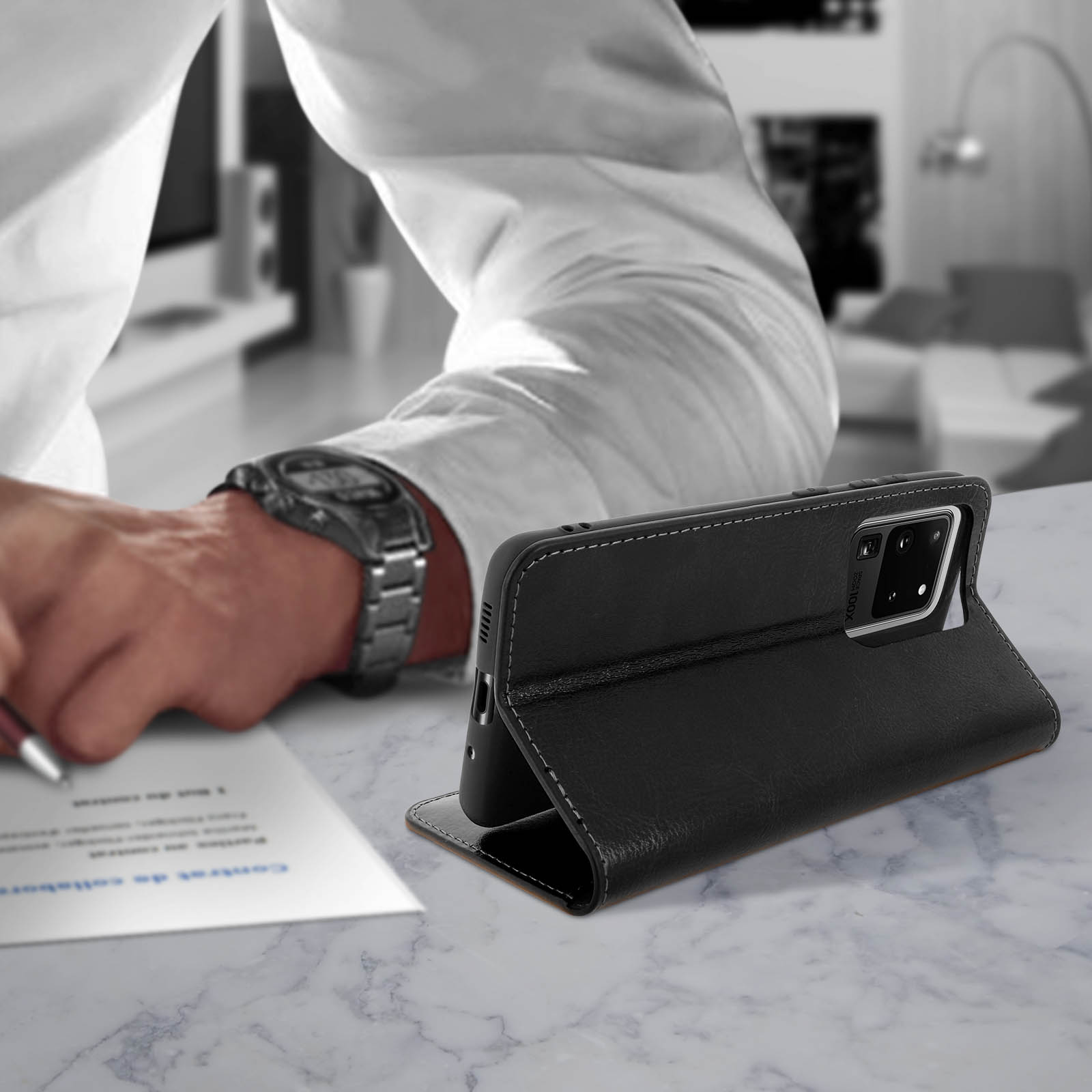 Étui Galaxy S20 Ultra Folio Cuir Véritable Porte cartes Support Vidéo - noir