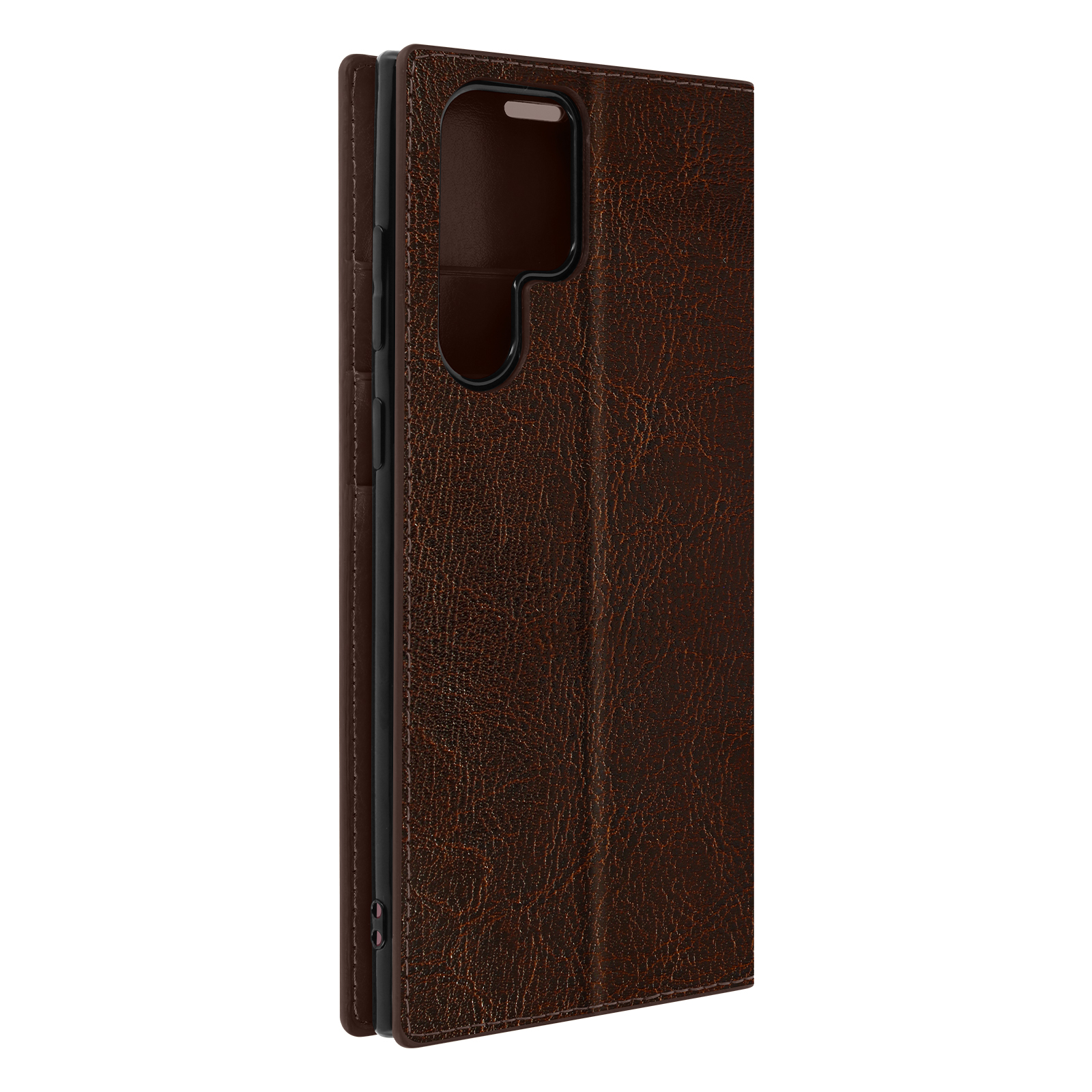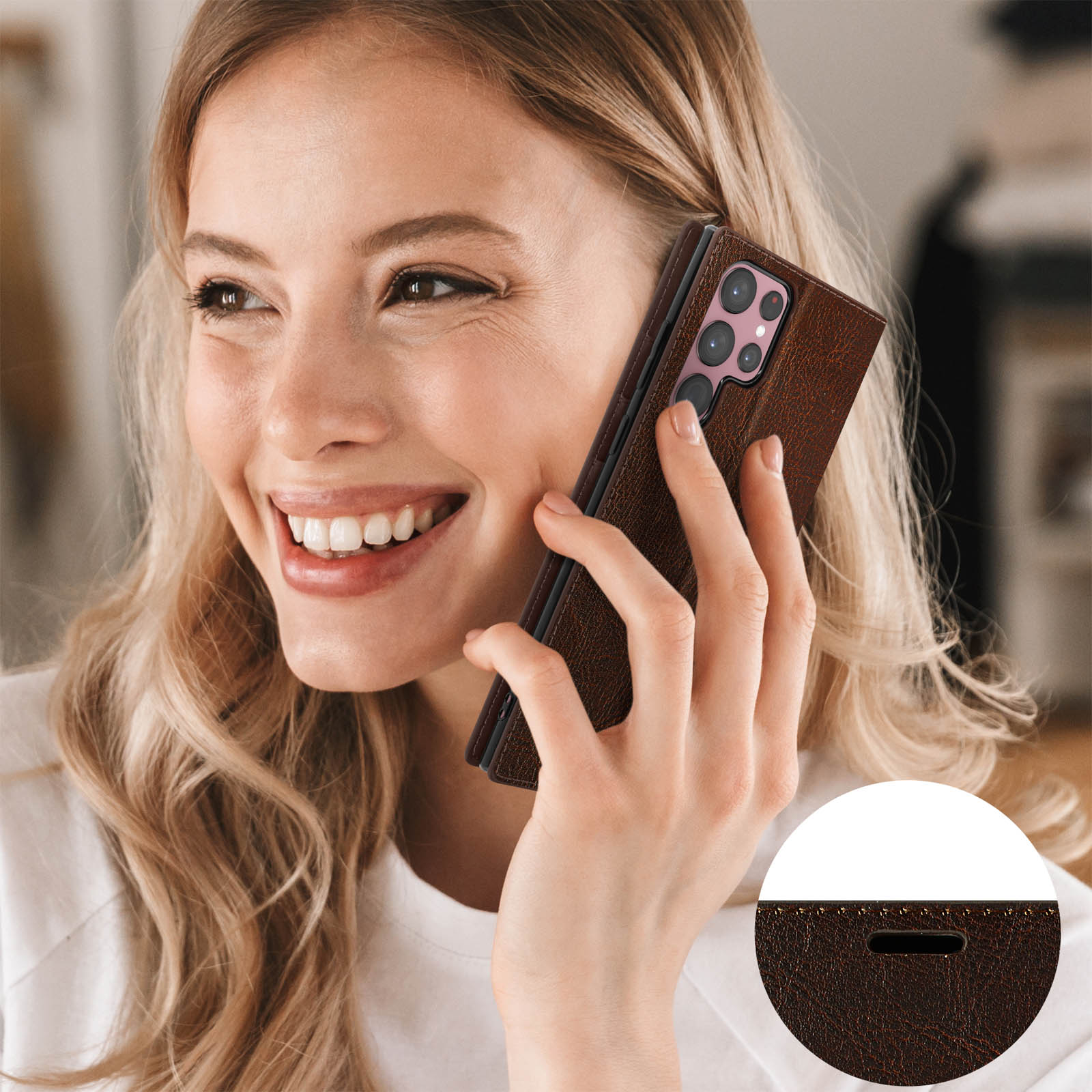 Étui Galaxy S22 Ultra Folio Cuir Véritable Porte cartes Support Vidéo - marron