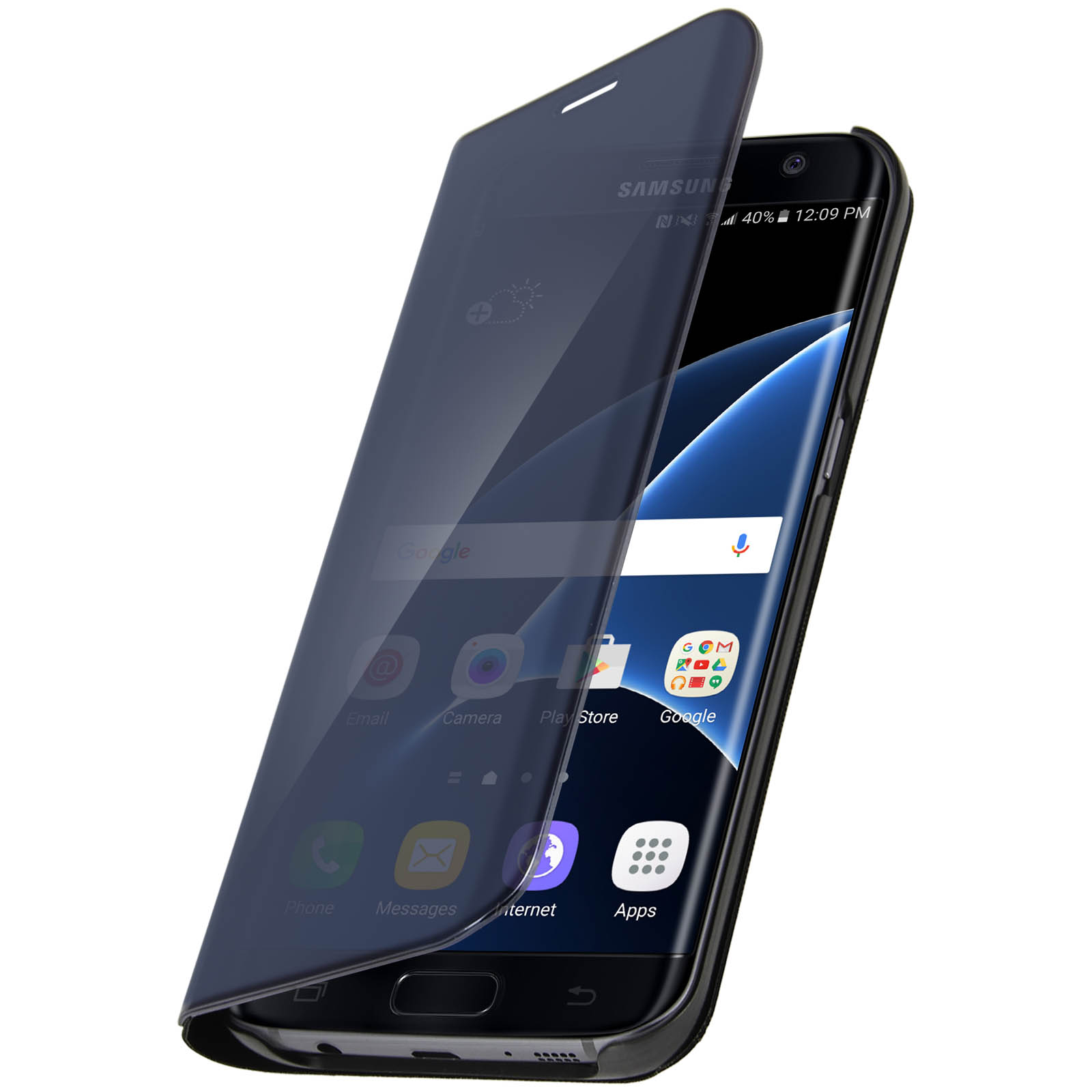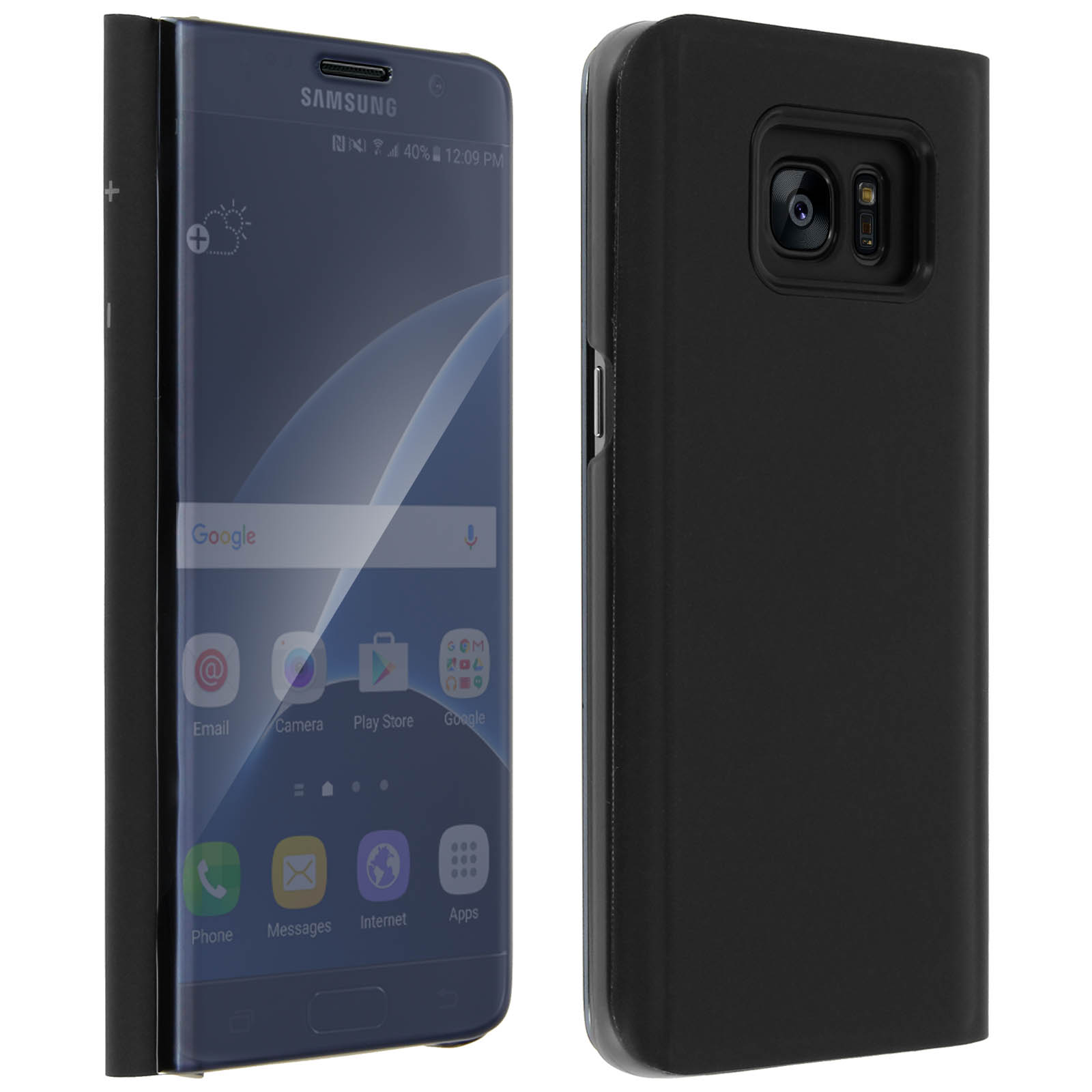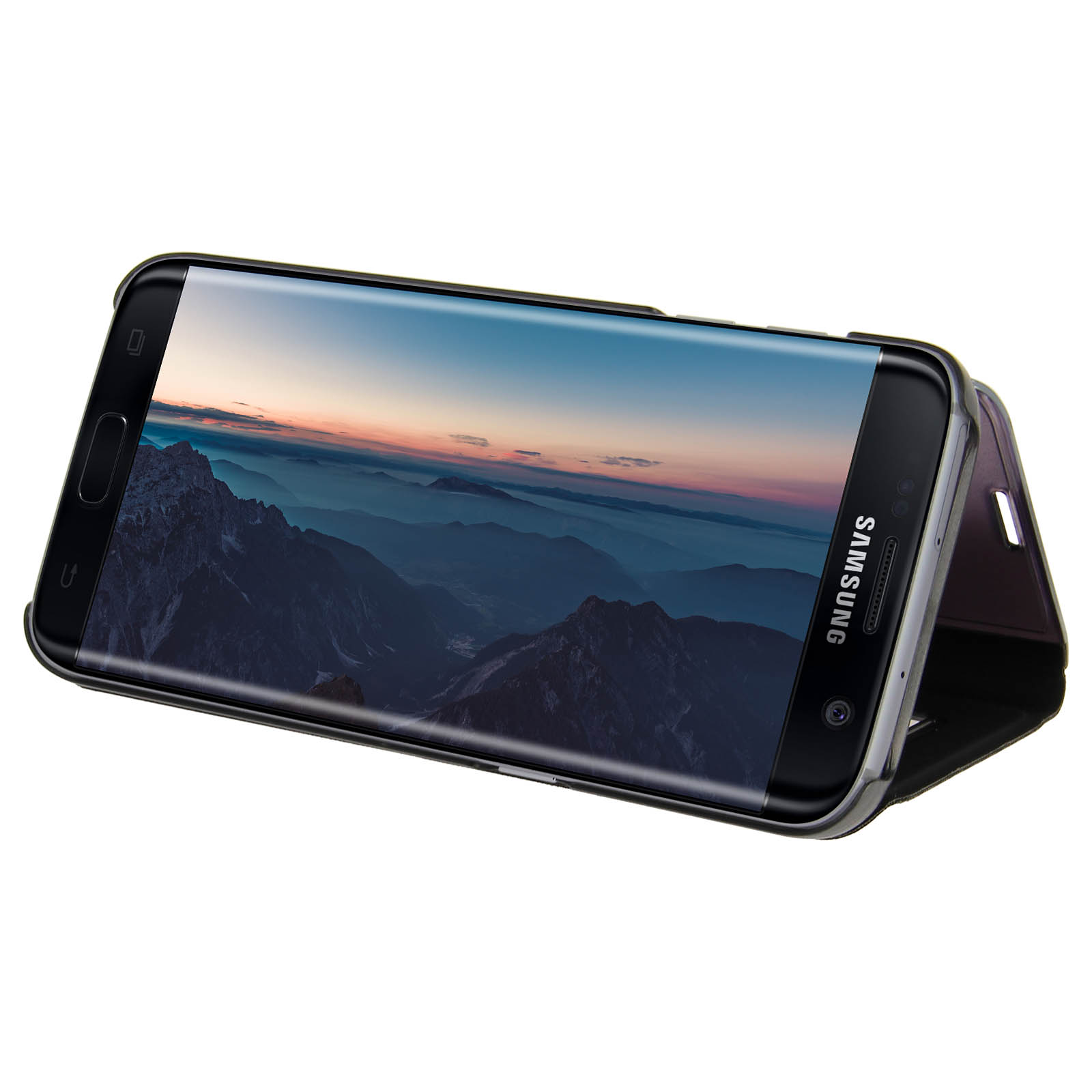 Etui Galaxy S7 Edge Housse Clapet Flip Cover Miroir Noir - Fonction Stand