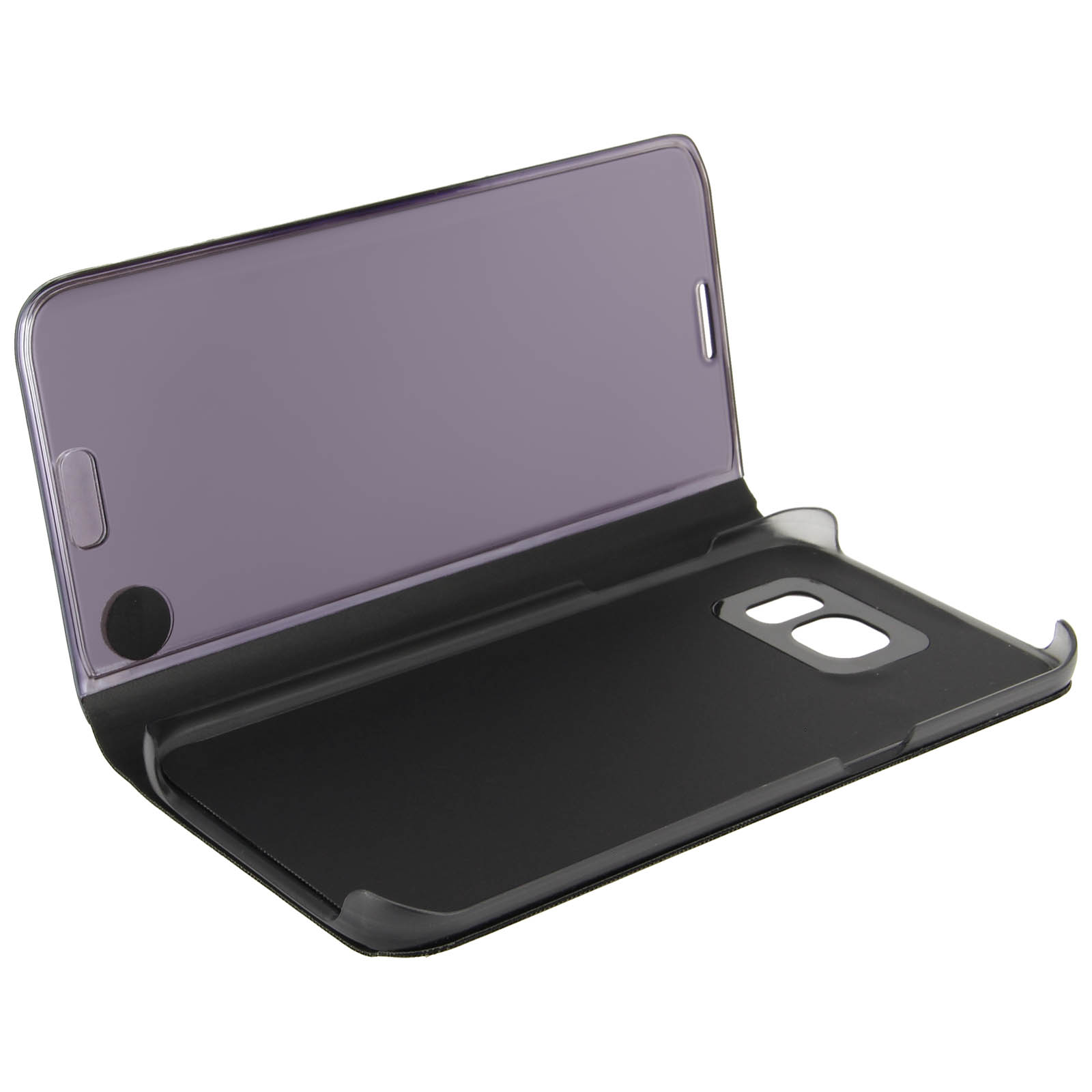 Libellé Etui Galaxy S7 Edge Housse Clapet Flip Cover Miroir Noir - Fonction Stand
