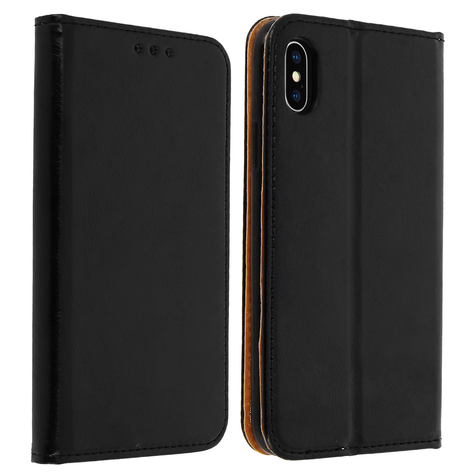 Étui iPhone X / XS Housse cuir portefeuille fonction support noir coque souple