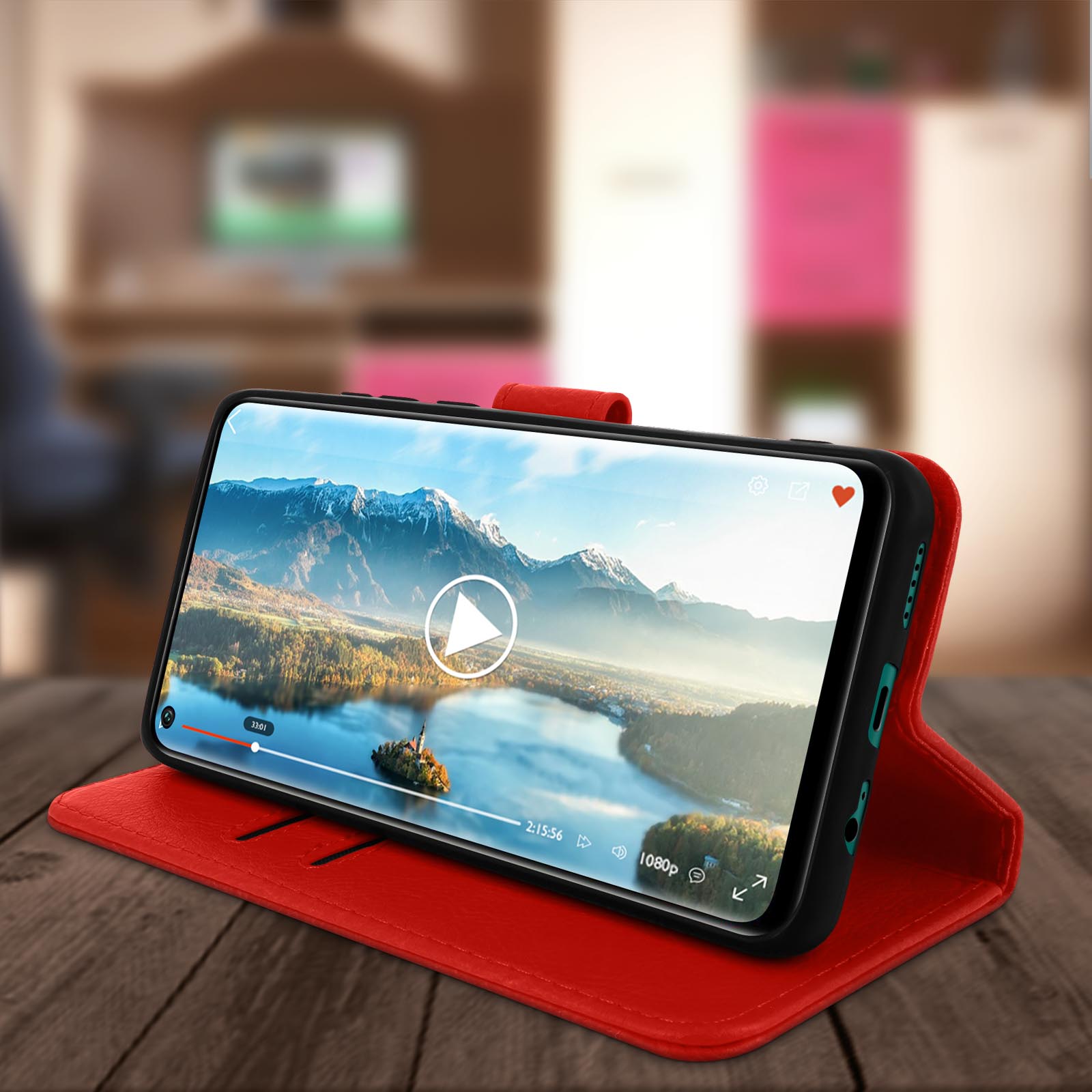 Étui pour Xiaomi Redmi Note 9 Clapet Portefeuille Fonction Support Vidéo Rouge