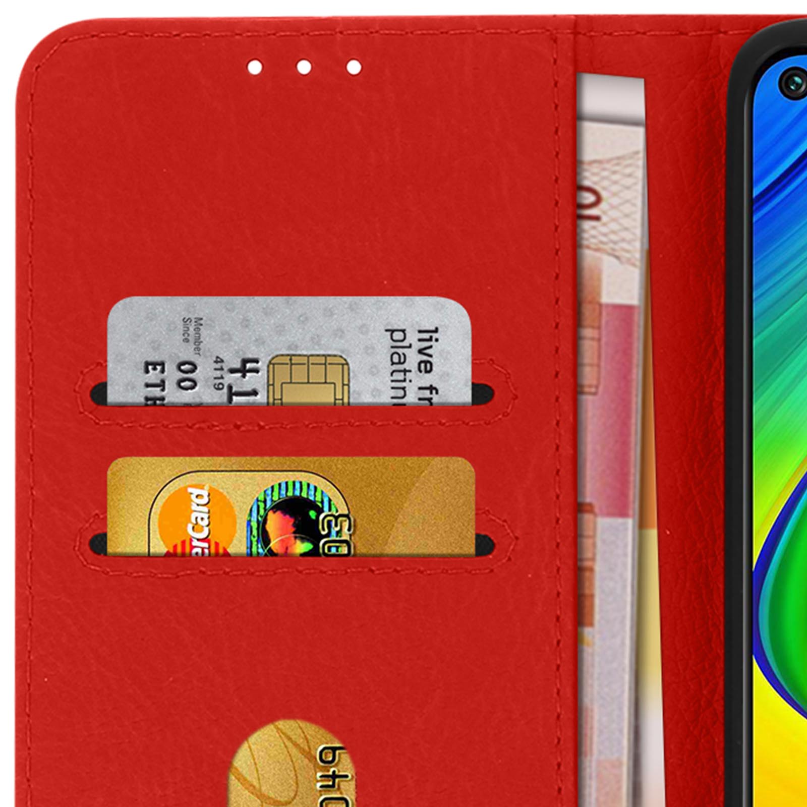 Libellé Étui pour Xiaomi Redmi Note 9 Clapet Portefeuille Fonction Support Vidéo Rouge