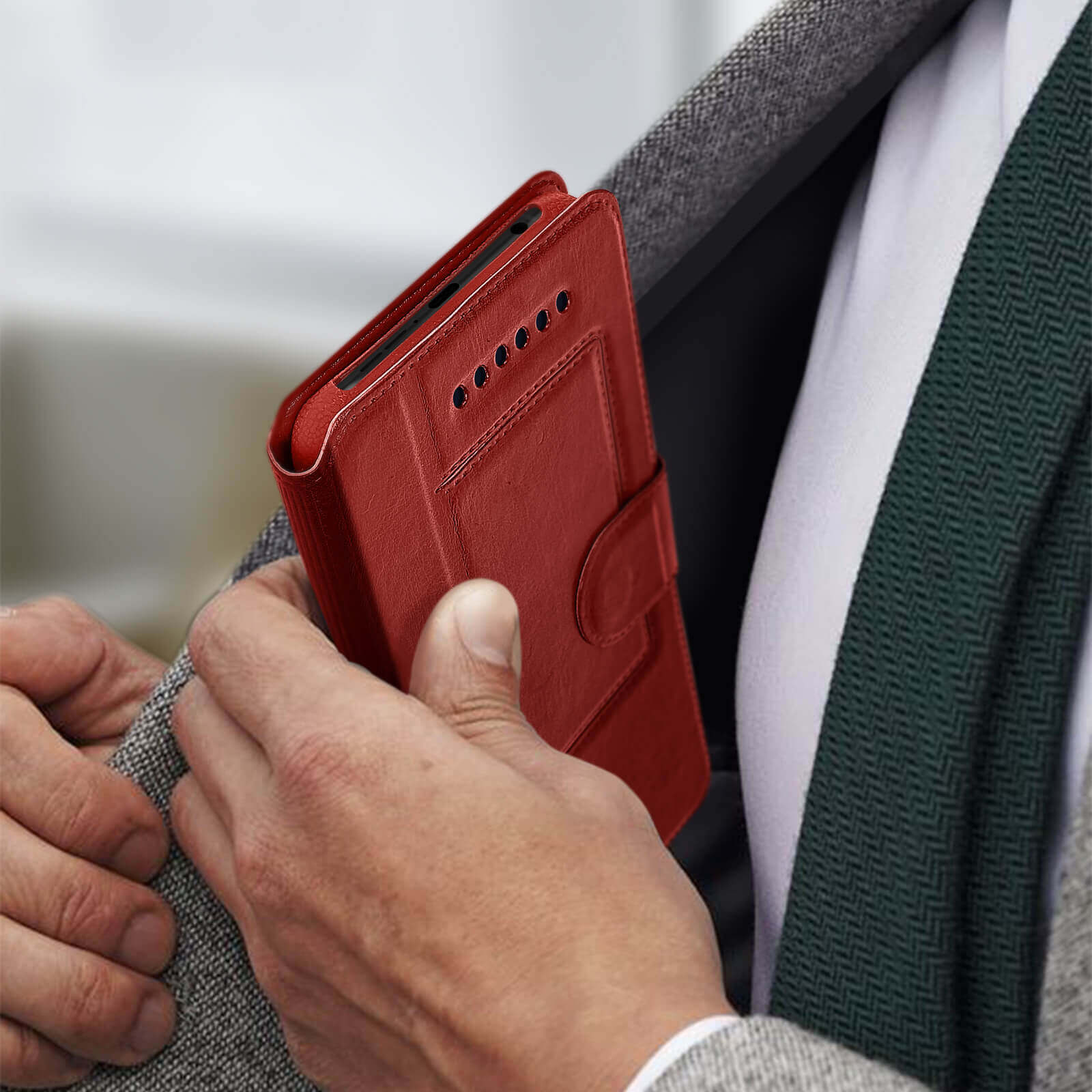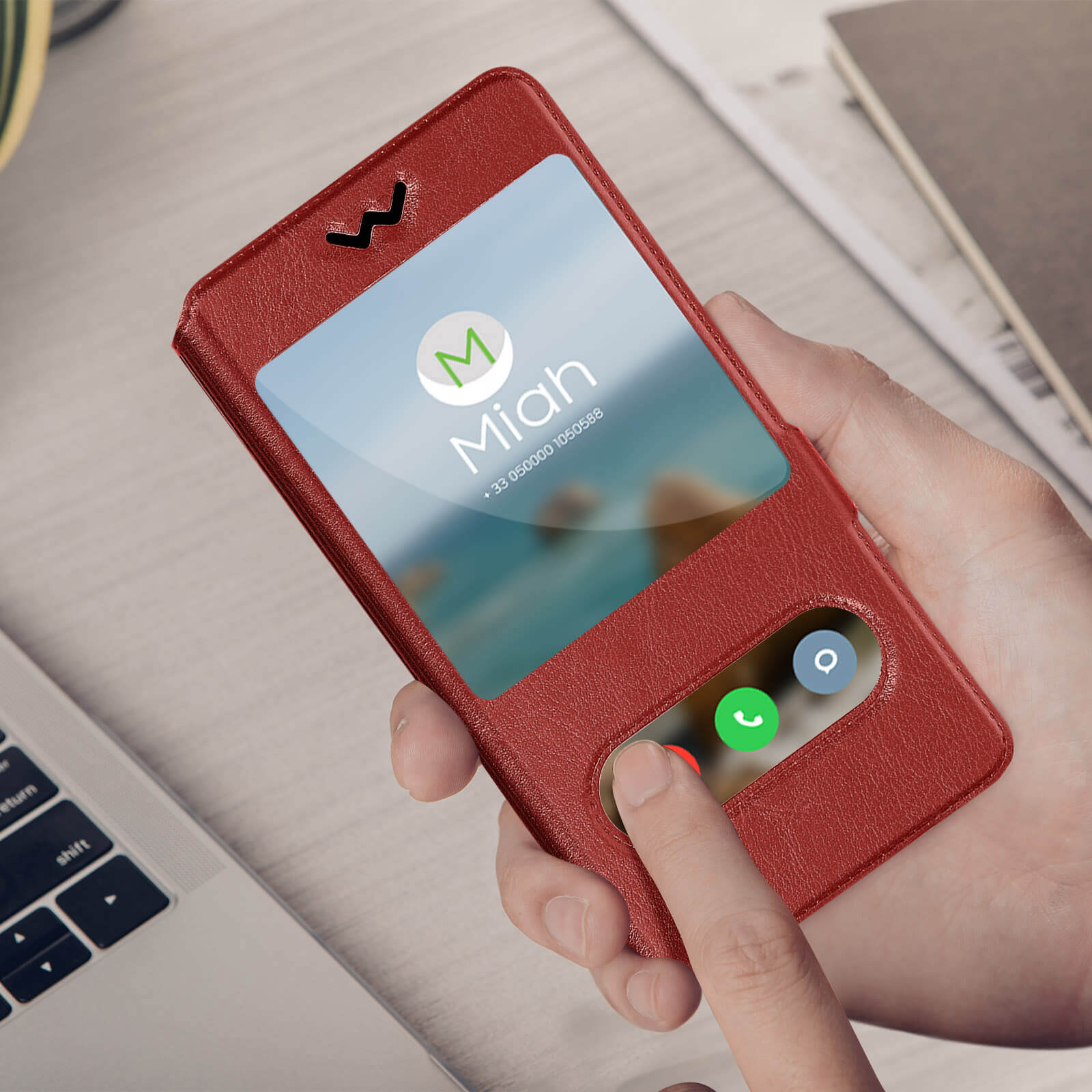 Étui Smartphone Universel Taille XXL Fenêtres D'affichage et Décrochage rouge