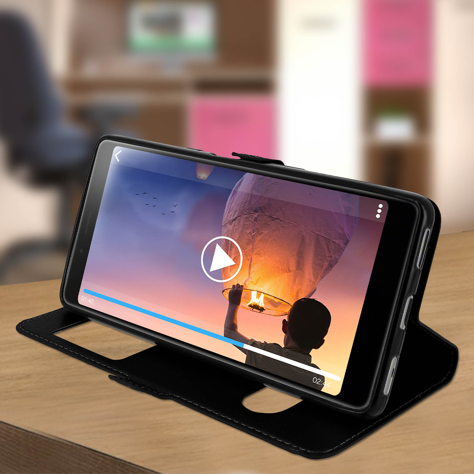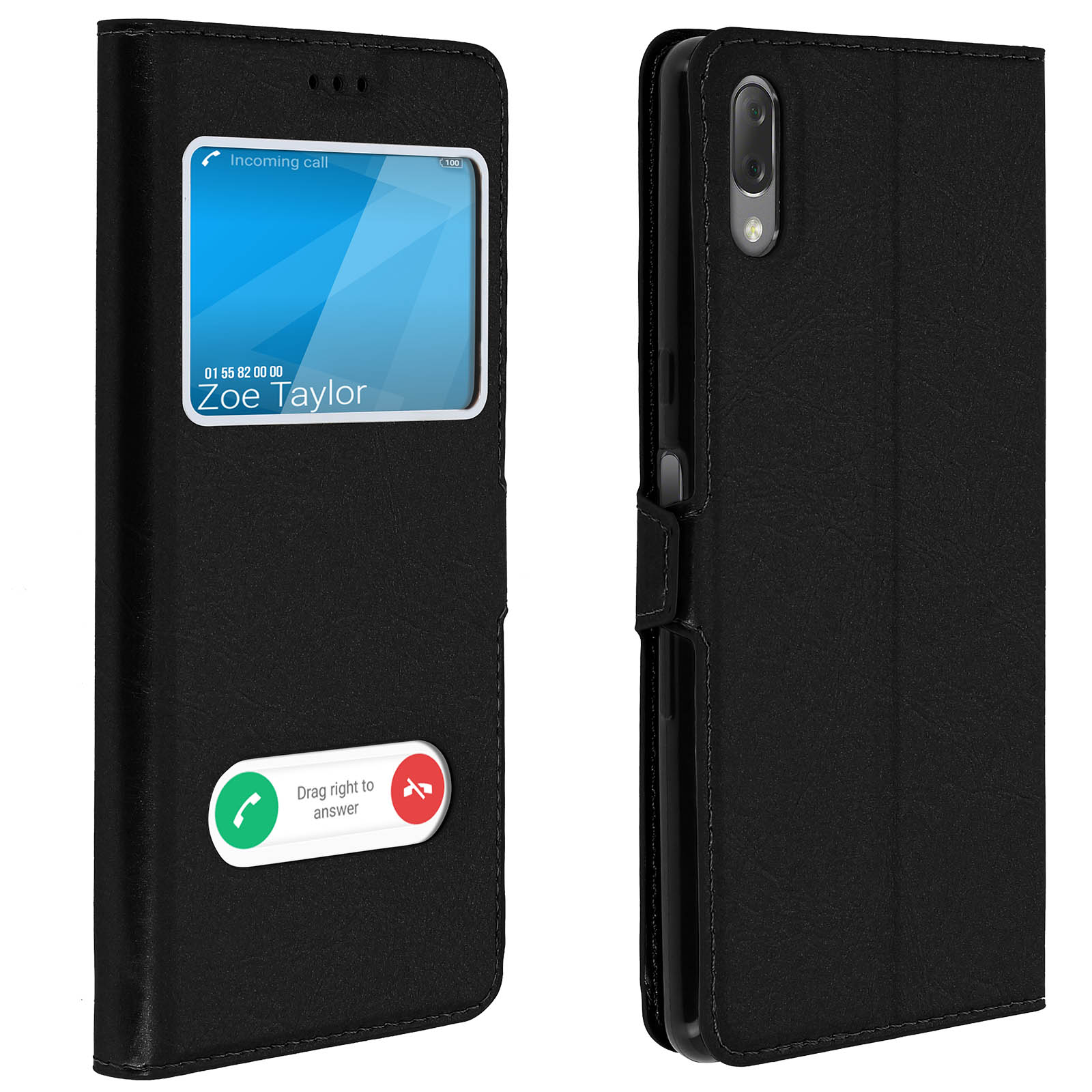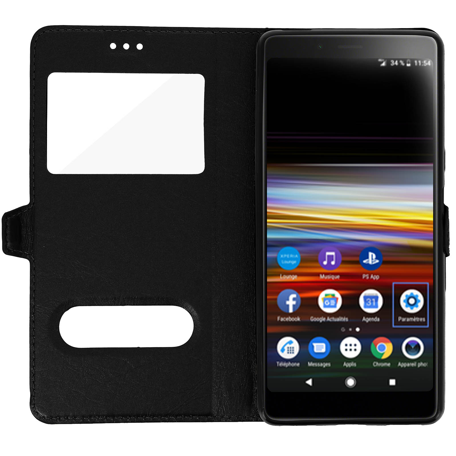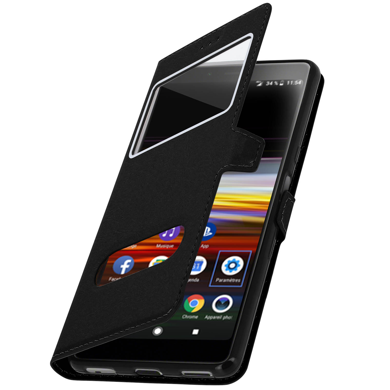 Etui Sony Xperia L3 Housse Folio Double Fenêtre Fonction Support Noir