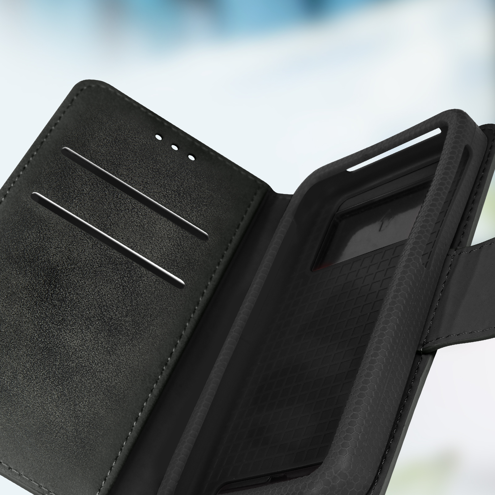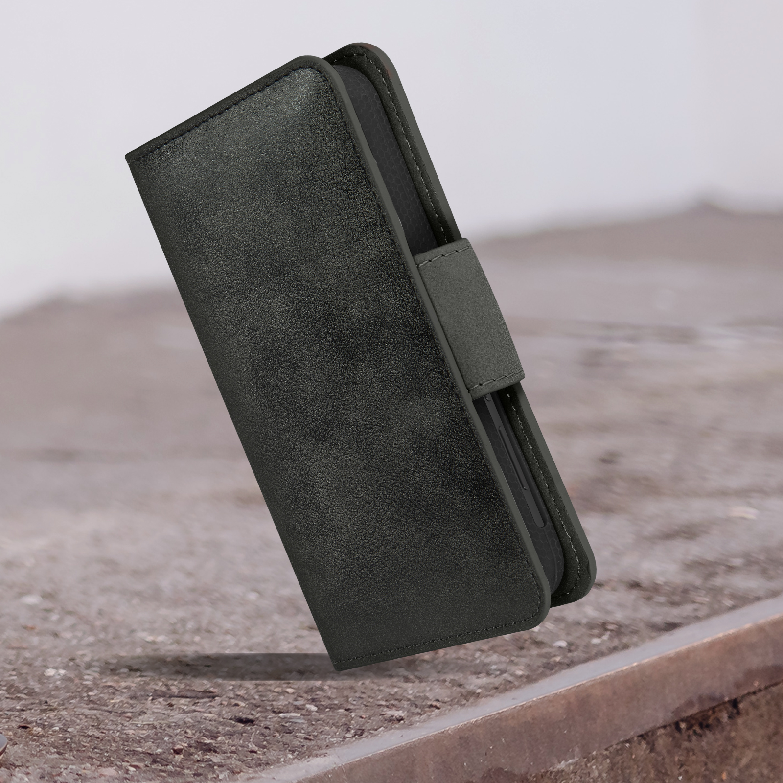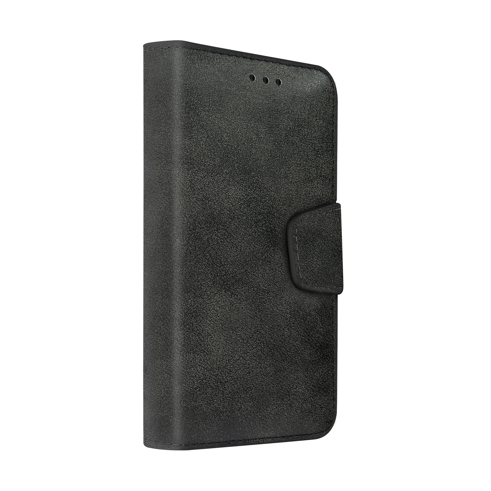 Housse folio universel pour smartphone d'une taille maximale de 83 x 154 mm. Revêtement en éco-cuir effet vieilli. Fonction slide. 2 porte-cartes + 1 pochette latérale. Fermeture à languette magnétique