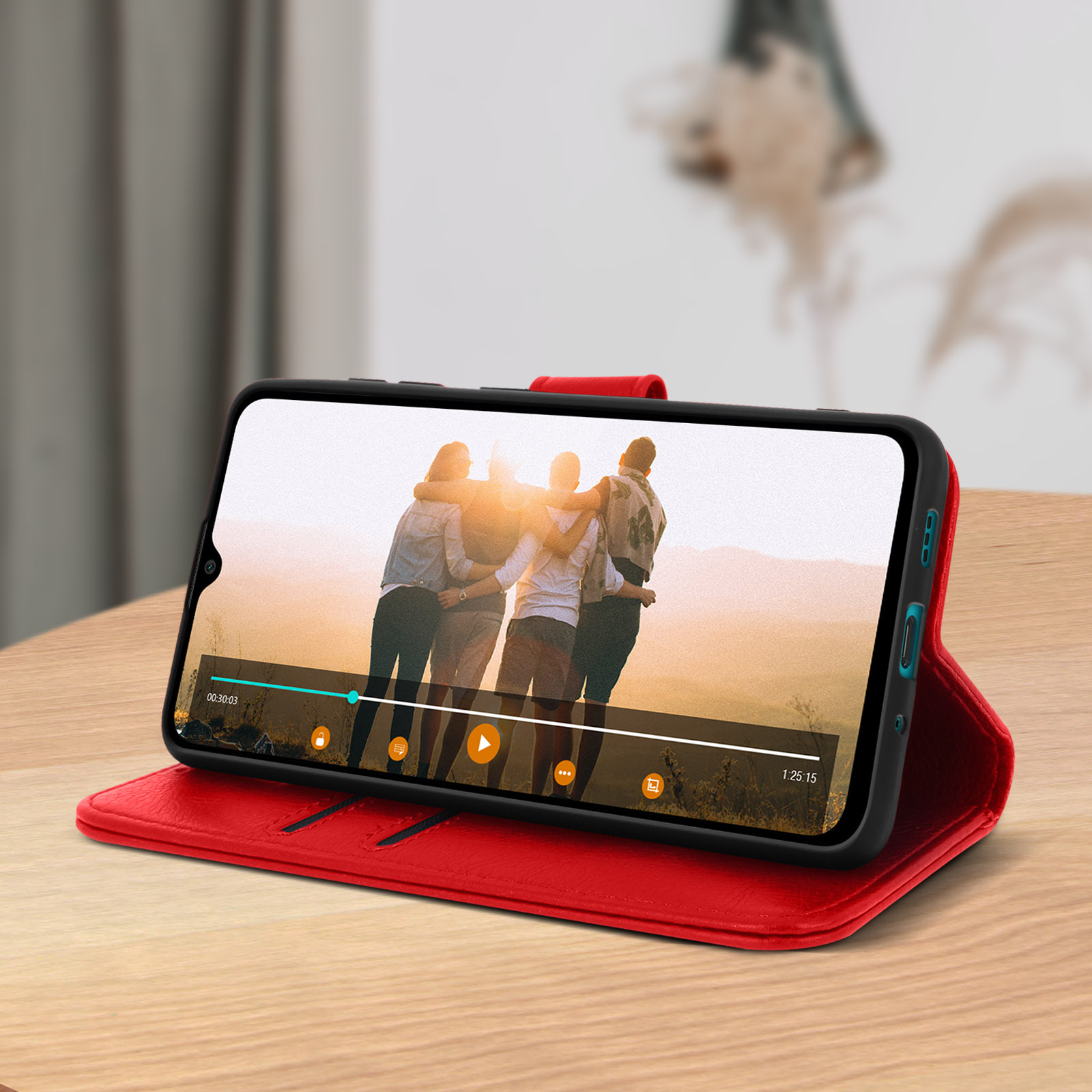 Étui Xiaomi Redmi 9A Protection avec Porte-carte Support Vidéo rouge