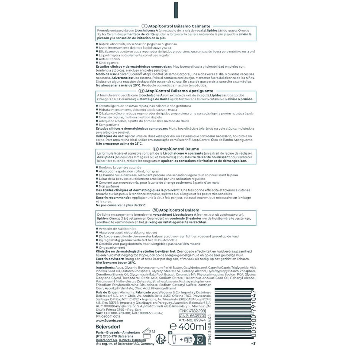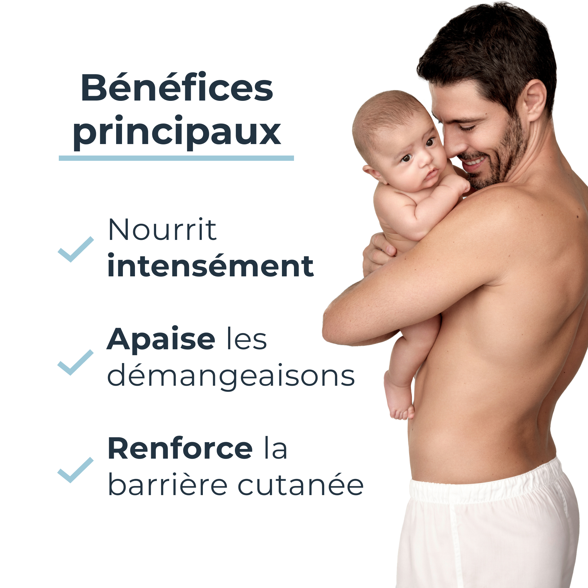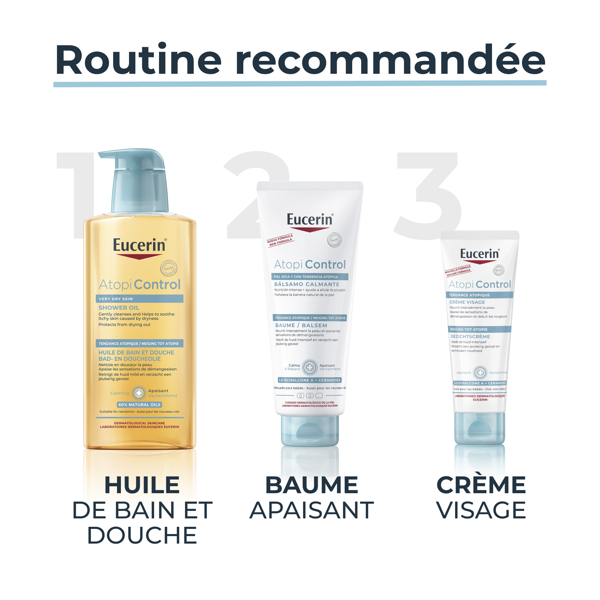 Le Baume AtopiControl convient à une peau à tendance atopique, irritable, sèche et sujette aux sensations de démangeaisons. La formule légère et agréable du baume contient de la Licochalcone A apaisante (un extrait de racine de réglisse), des lipides (Acides Gras Omégas 3 & 6 et Céramides) et du Beurre de Karité nourrissant pour renforcer la barrière cutanée, réduire les rougeurs et apaiser les sensations d'irritation et de démangeaison. Résultats : - Renforce la barrière cutanée - Absorption rapide, non collant, non gras. - Le baume huile-dans-eau relipidant procure une sensation légère tout en nourrissant la peau - L’état de la peau est durablement amélioré par une utilisation régulière - Convient aux nouveau-nés, pour la zone de change seulement à partir d'un mois - Non parfumé Des études cliniques et dermatologiques le prouvent : Une très bonne efficacité et tolérance cutanée prouvée sur les peaux à tendance atopique, sujettes aux allergies et les peaux très sensibles.