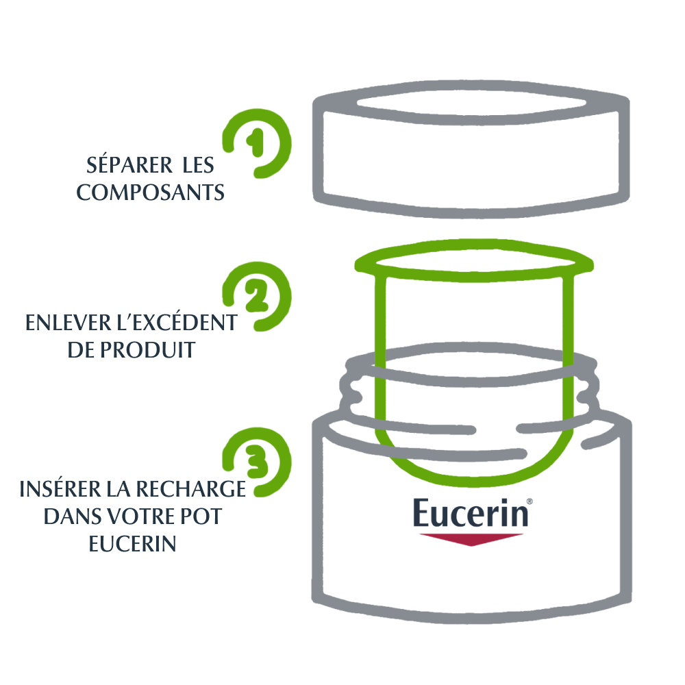J'utilise cette crème depuis des années, avec la recharge fini les pots vides à la poubelle et le produit revient moins cher . Parfait ! Merci Eucerin !