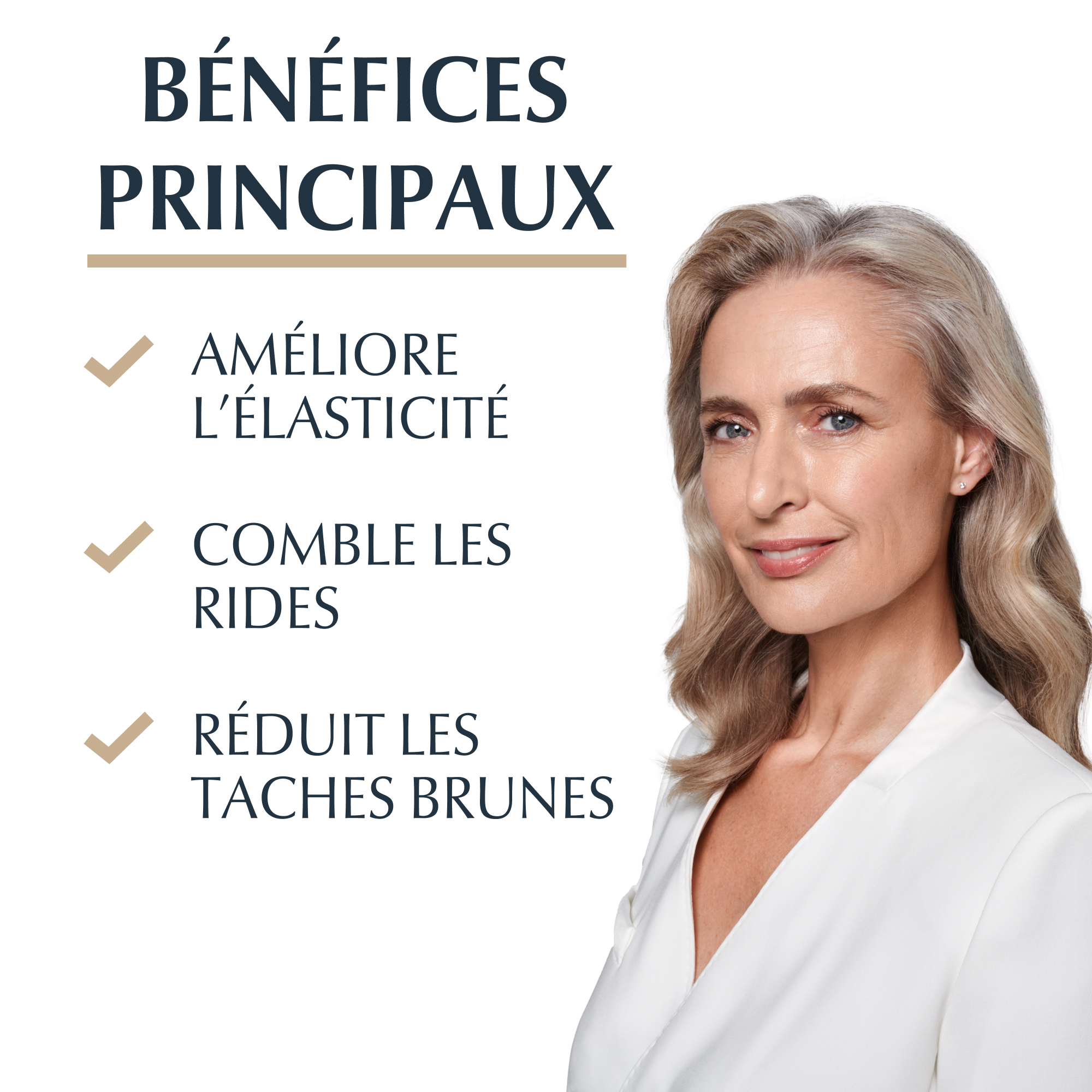 anti-âge, permet : 1. Moins de rides : La formule associe l’Acide