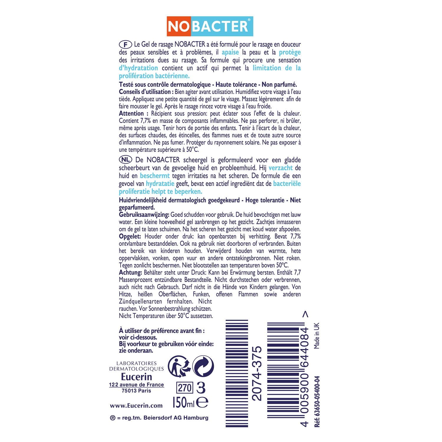 | Libellé | Eucerin Nobacter gel de rasage lot 2x150ml |