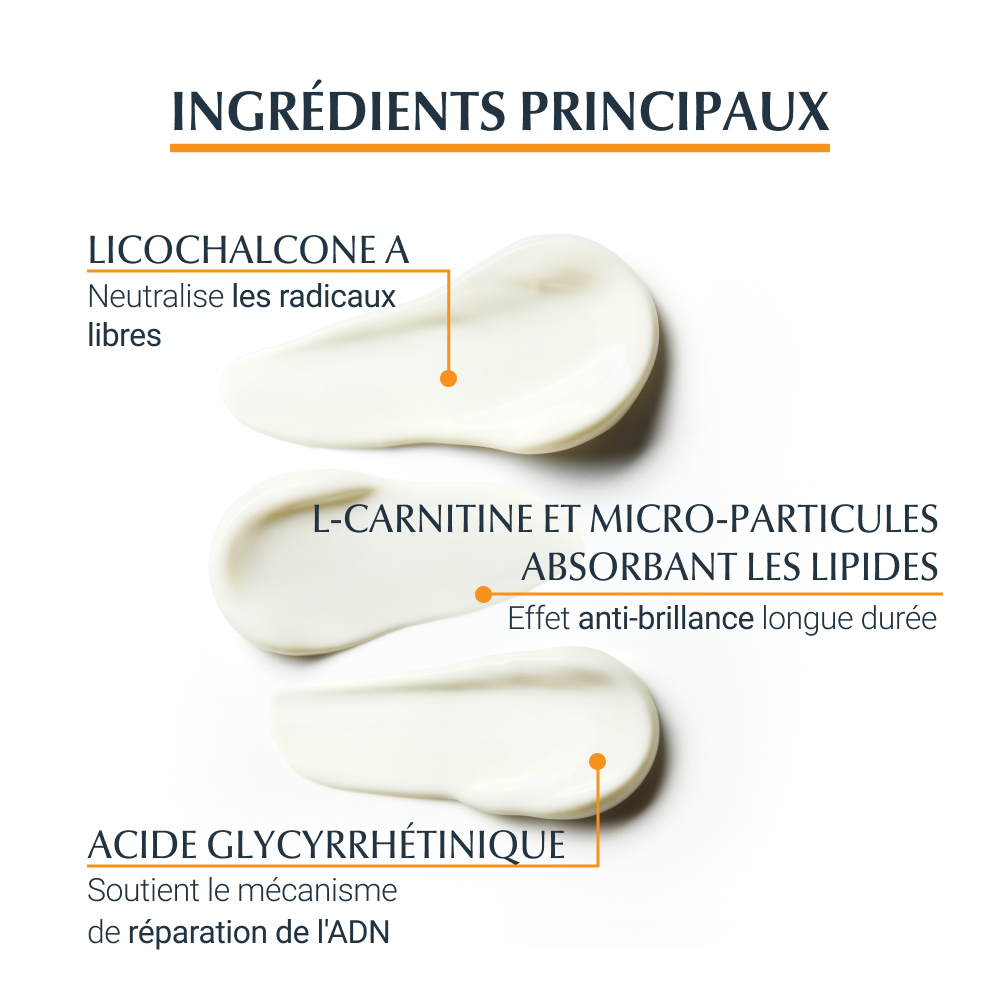 Ingrédients : Aqua, c12-15 alkyl benzoate, alcohol denat., butyl methoxydibenzoylmethane, butylene glycol dicaprylate/dicaprate, ethylhexyl triazone, bis ethylhexyloxyphenol methoxyphenyl triazine, dibutyl adipate, diethylamino hydroxybenzoyl hexyl benzoate, glyceryl stearate citrate, phenylbenzimidazole sulfonic acid, silica, tapioca starch, behenyl alcohol, cetearyl alcohol, silica dimethyl silylate, carnitine, glycyrrhetinic acid, glycyrrhiza inflata root extract, glycerin, dimethicone, copernicia cerifera cera, hydroxypropyl methylcellulose, carrageenan, xanthan gum, sodium hydroxide, trisodium edta, hydroxyacetophenone, ethylhexylglycerin, phenoxyethanol.
