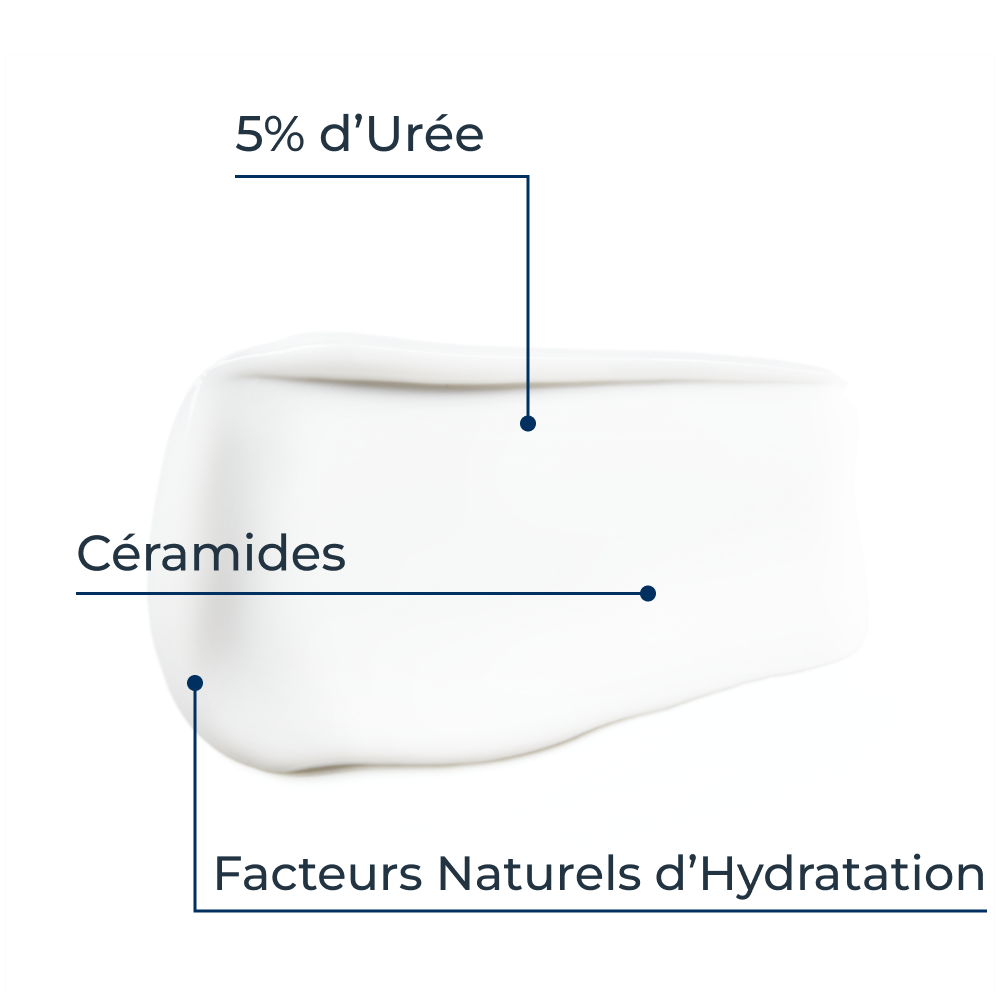 Ingrédients : Aqua, Glycerin, Urea, Caprylic/Capric Triglyceride, Pentaerythrityl Tetraisostearate, Cetyl Alcohol, Glyceryl Stearate, Sodium Lactate, Hydroxypropyl Starch Phosphate, Ceramide Np, Lactic Acid, Tocopherol, Cholesterol, Alanine, Carnitine, Glycine, Sodium Pca, Arginine Hcl, Phytosphingosine, Potassium Cetyl Phosphate, Oleic Acid, Xanthan Gum, 1,2-Hexanediol, Phenoxyethanol, Sodium Chloride