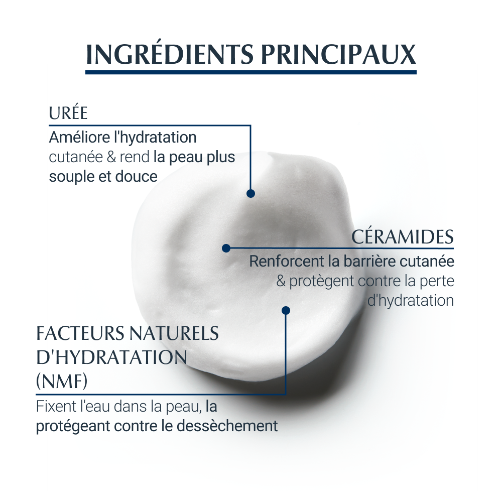 • Hydratation Intensive : Enrichie en 10% d'Urée pour une hydratation profonde et durable de la peau sèche.