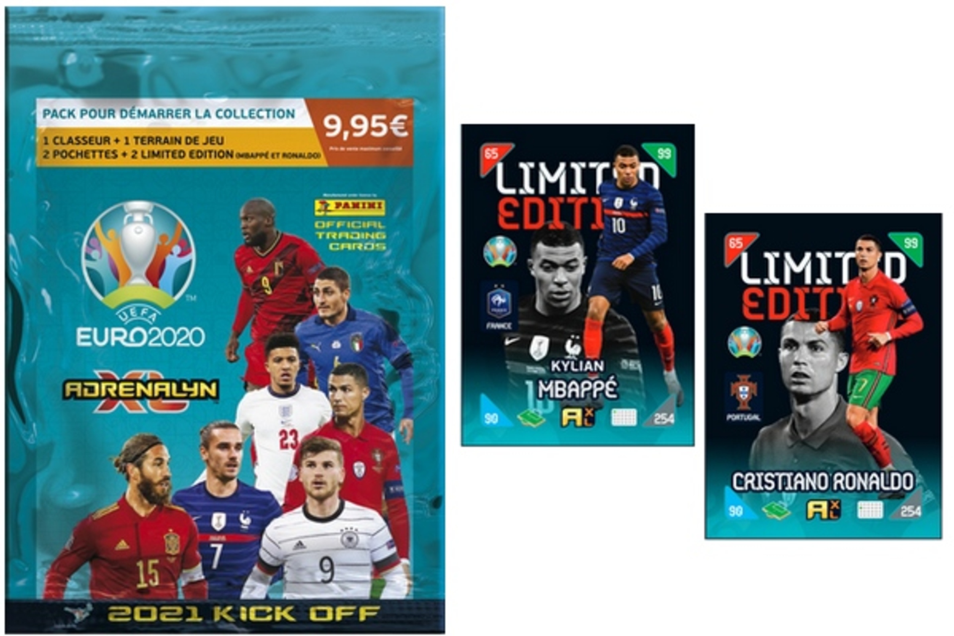 Le pack pour démarrer ta collection avec 1 classeur, le guide, le terrain de jeu, 2 pochettes et 2 cartes Limited Edition : MBAPPÉ et RONALDO en EXCLUSIVITÉ !