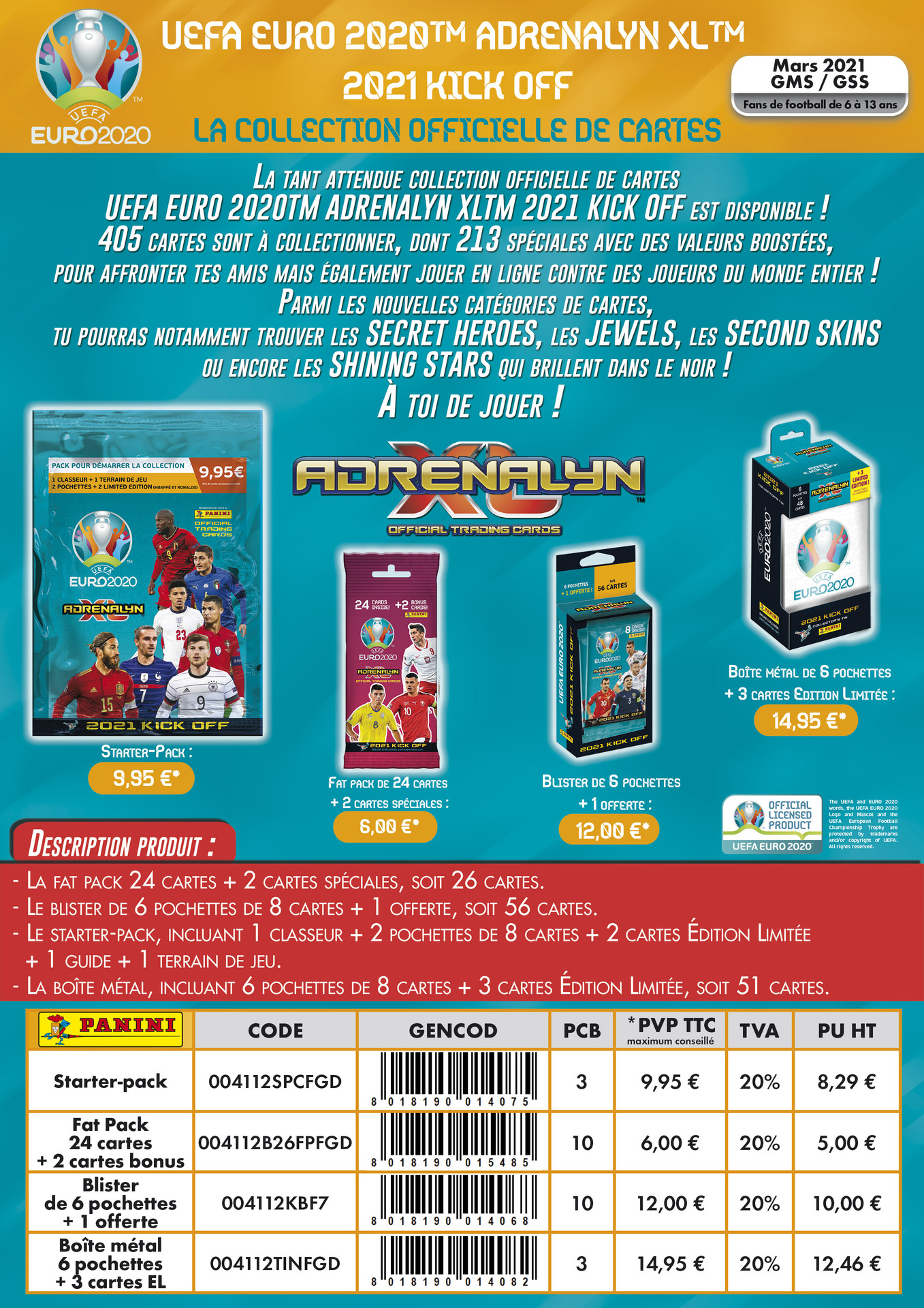 Voici la collection officielle de cartes UEFA EURO 2020TM ADRENALYN XL 2021 KICK OFF !