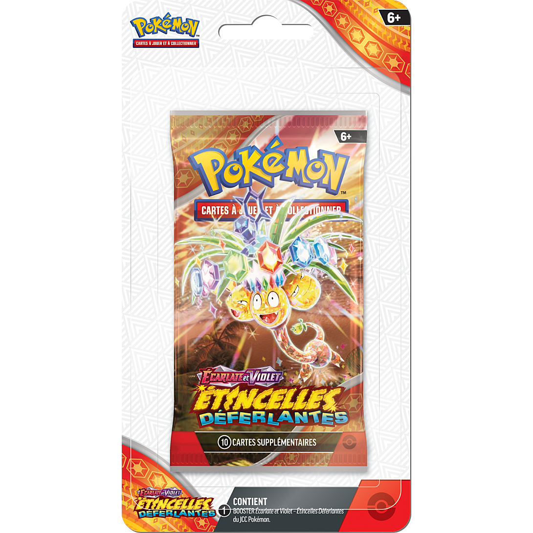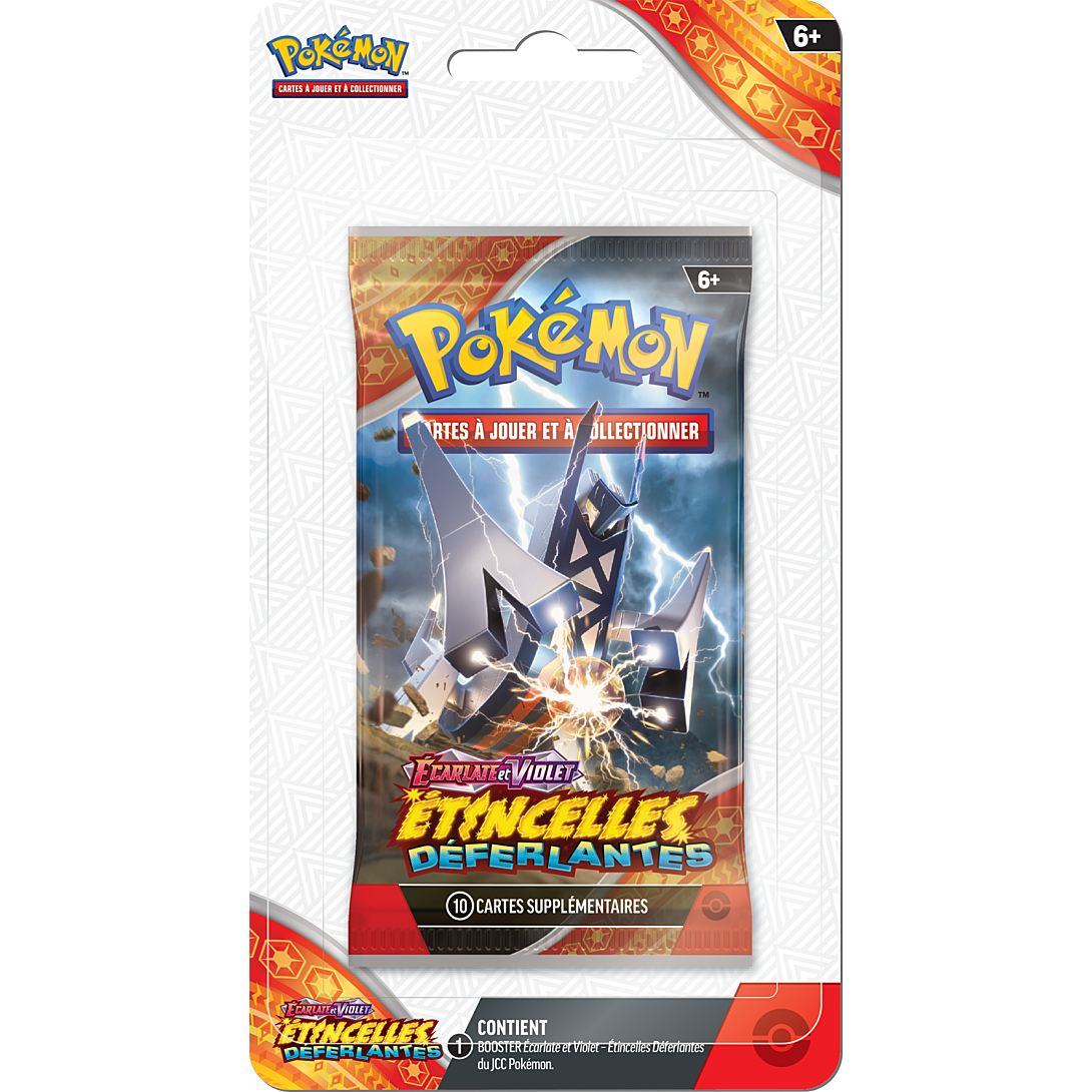 | Avertissements | ATTENTION ! DANGER D’ÉTOUFFEMENT Petits éléments. Ne convient pas aux enfants de moins de 3 ans. Attention, un booster ne suffit pas pour jouer, il faut le combiner avec un deck de 60 cartes dans lequel se trouve la règle du jeu de cartes à jouer et à collectionner Pokémon. |